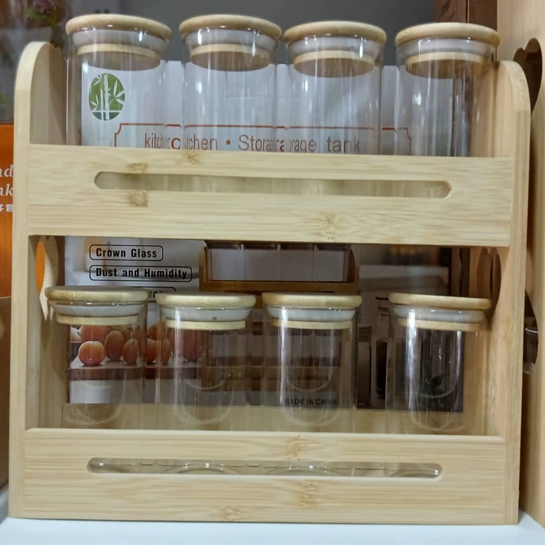 -8علب بهارات مع ستاند خشب بامبو
