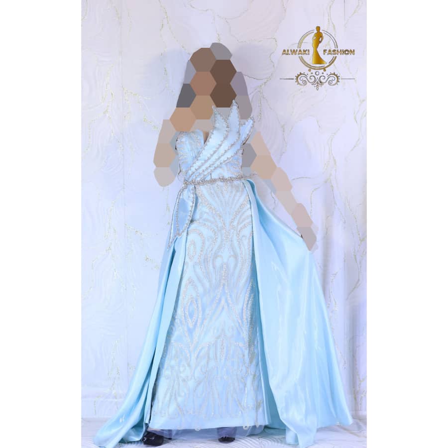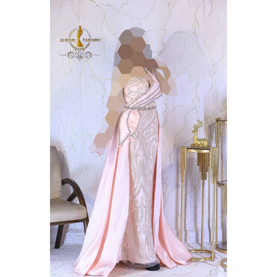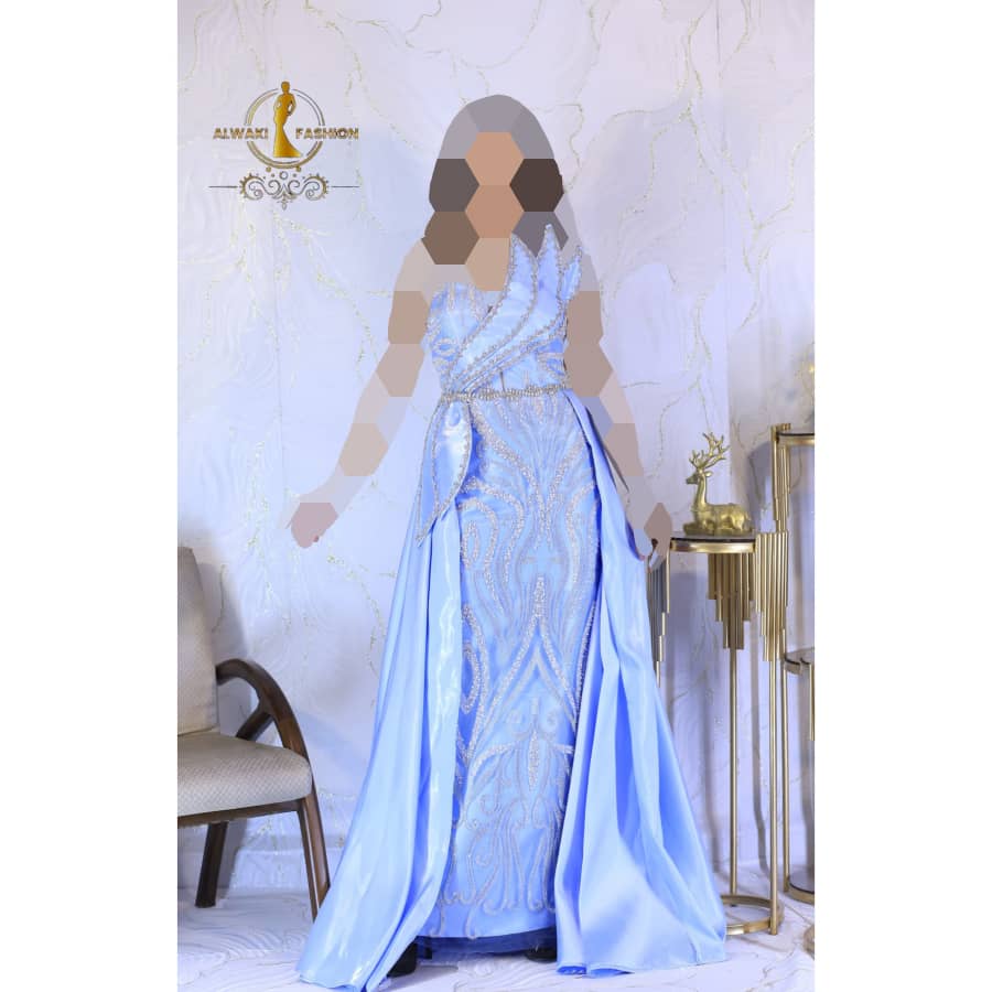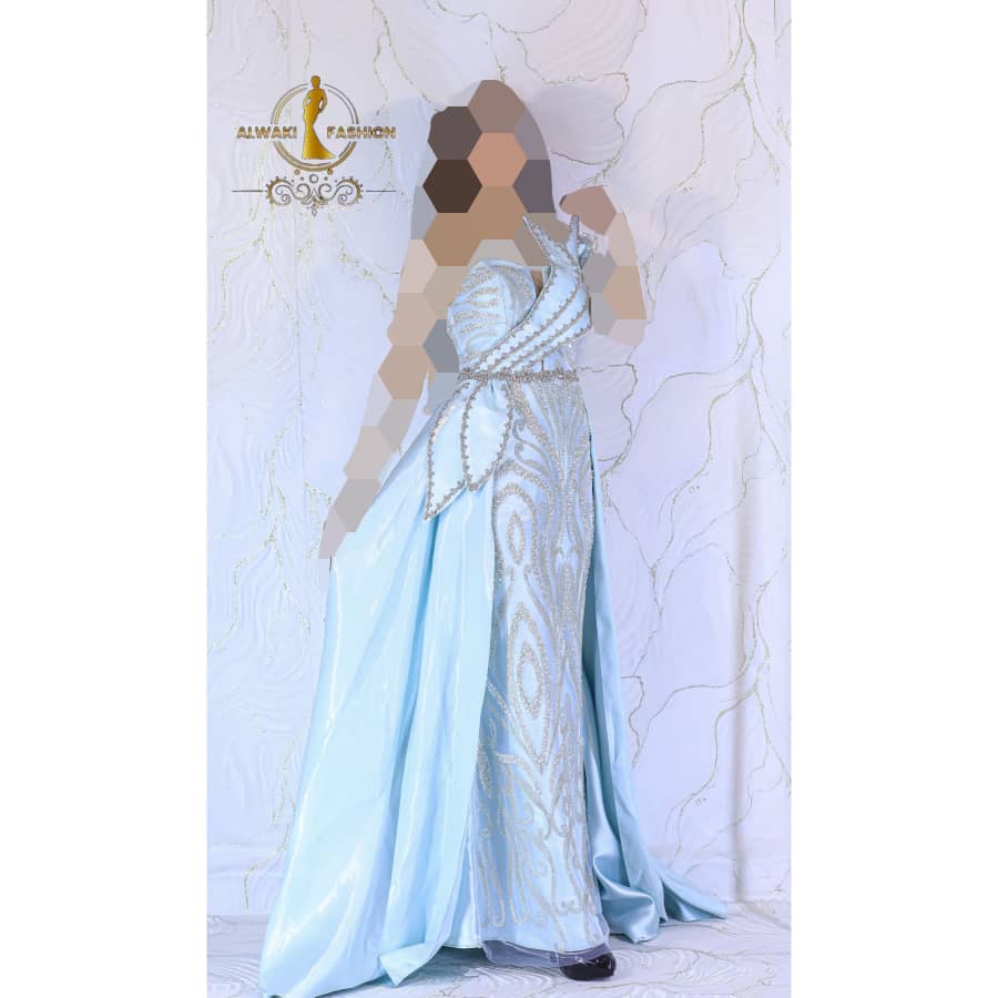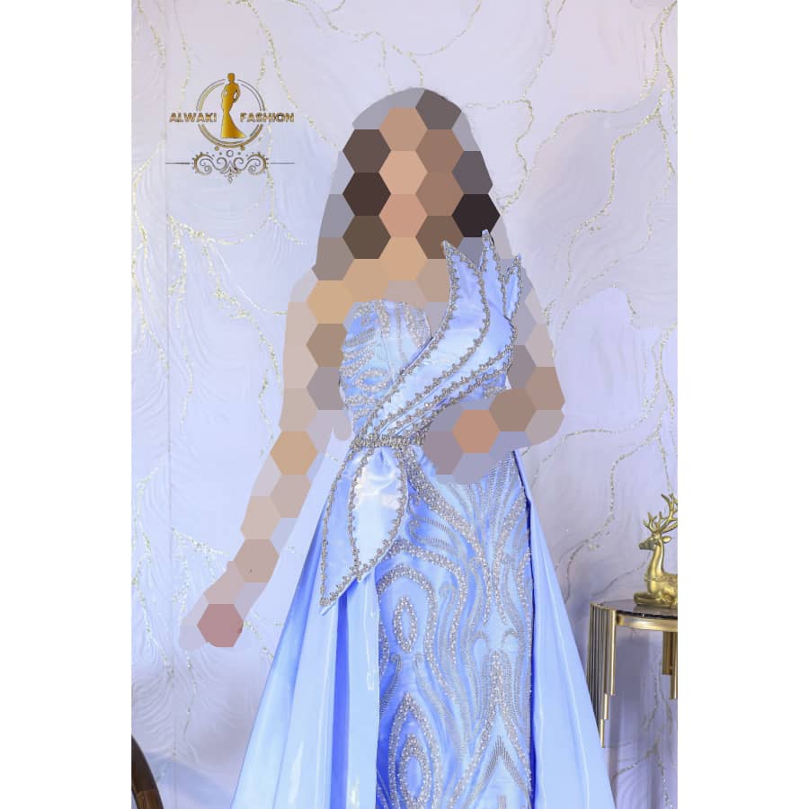 -فستان شك نول رفارف على الصدر ستراس مفصّل على الجسم مع تيور ساتان لامع -الألوان: فستقي/ريشي/زهري/ذهبي أزرق -المقاسات: 38/42/46/50 -سعر الجملة: 70$