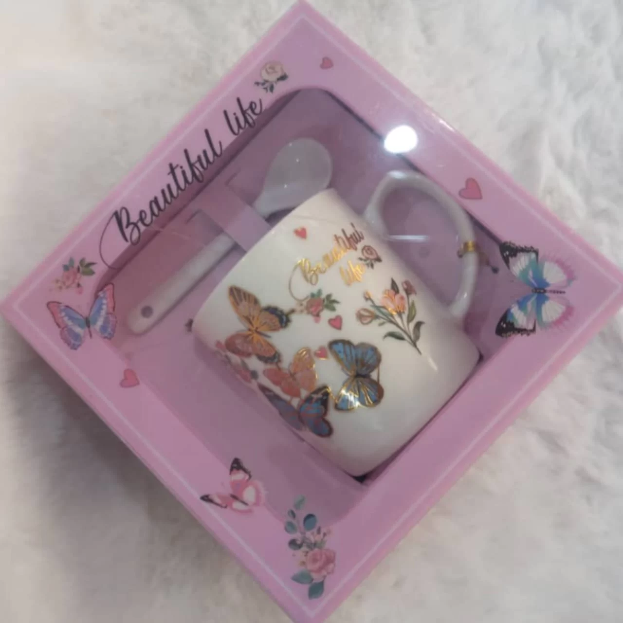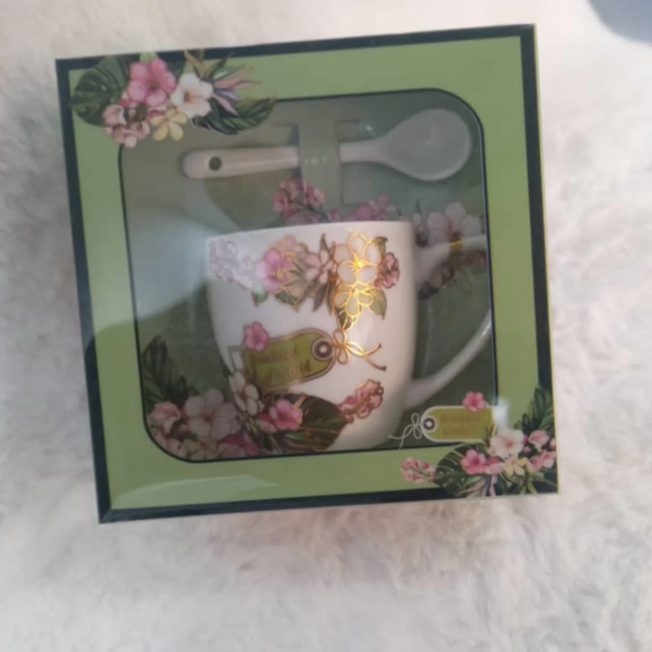 -كوب مع ملعقة حجم كبير بعلبة هدايا