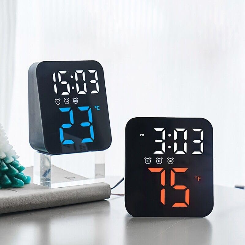 هذا الجهاز المبتكر ليس مجرد منبه بأرقام كبيرة وملونة، بل يعرض أيضًا درجة حرارة الغرفة.
