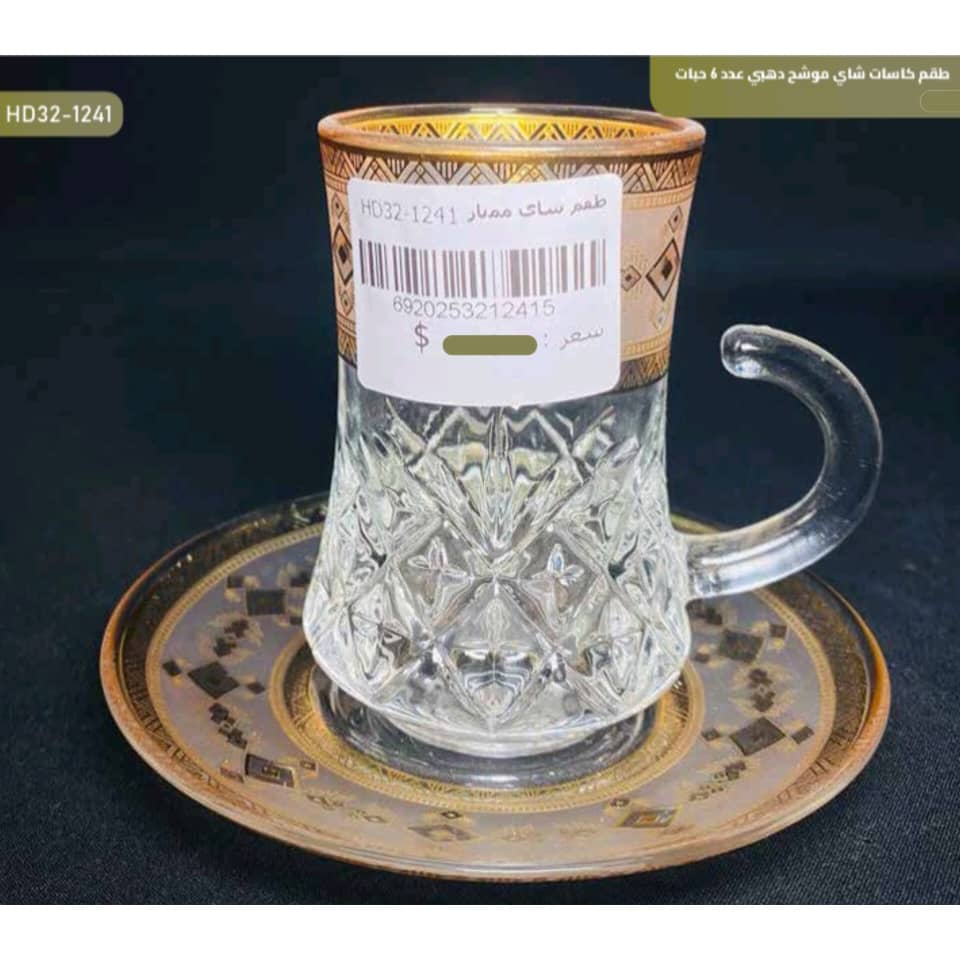 -طقم كاسات شاي محجّرة مذهّبة مع أطباق