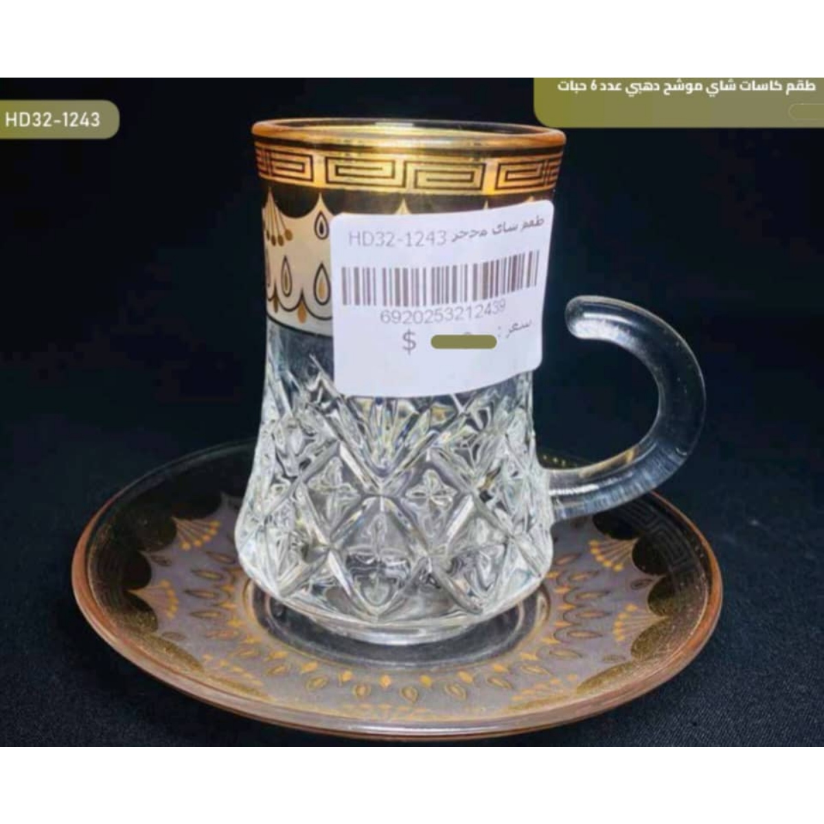-طقم كاسات شاي محجّر مذهّب مع أطباق