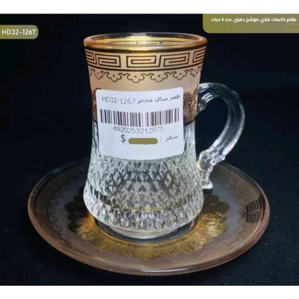 -طقم كاسات شاي محجّرة مذهّبة مع أطباق