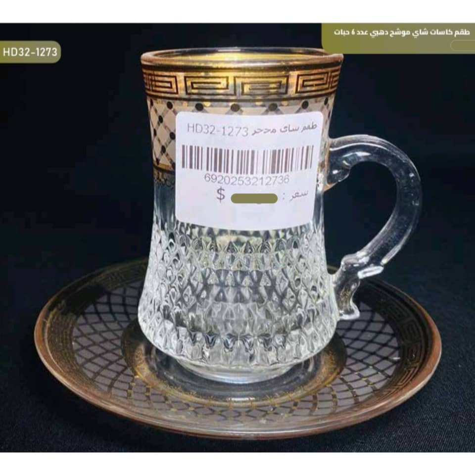 -طقم كاسات شاي محجّرة مذهّبة مع أطباق