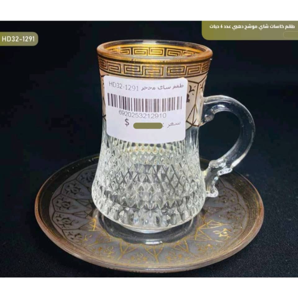 -طقم كاسات شاي محجّرة مذهّبة مع أطباق