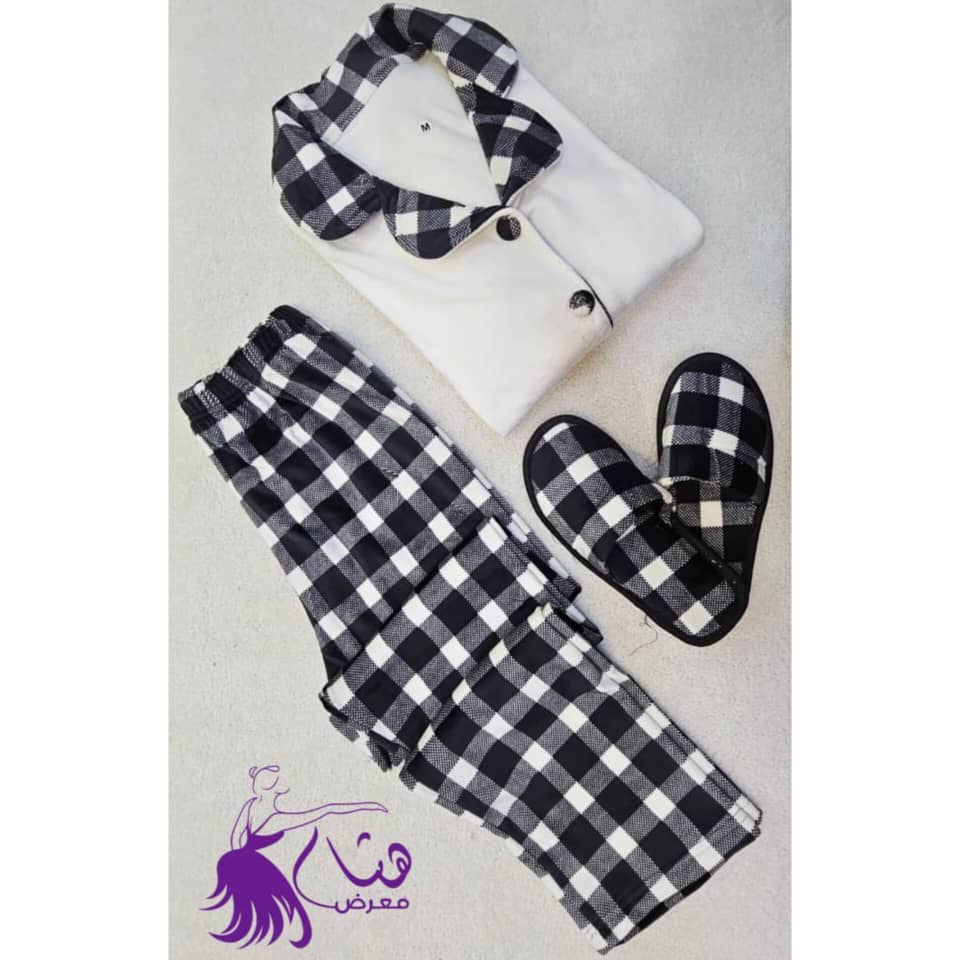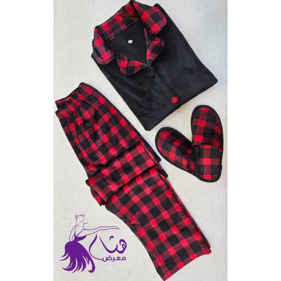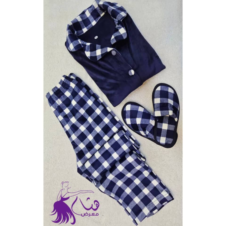 -بيجاما مخمل مبطنة بأزرار+سليبر