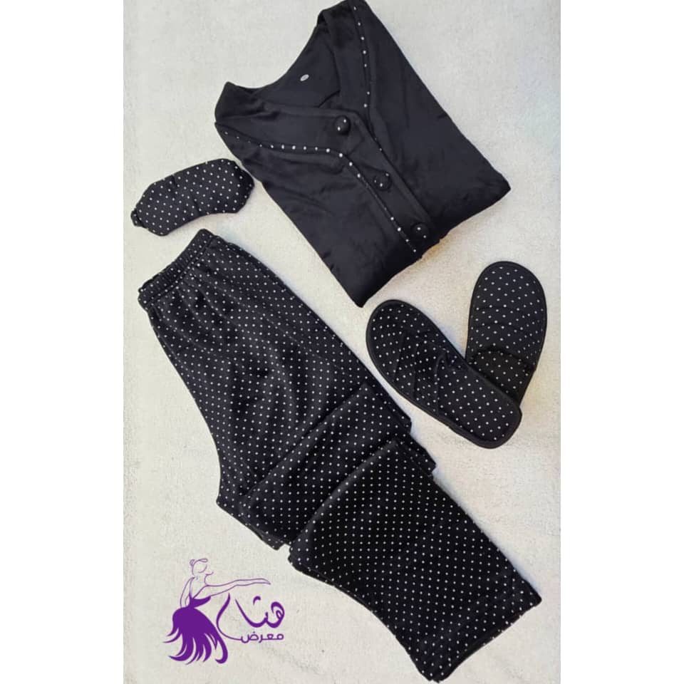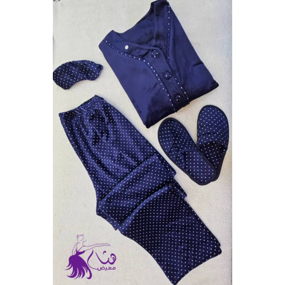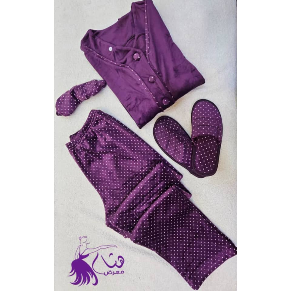 -بيجاما مخمل مبطنة بأزرار+سليبر+بوند عيون