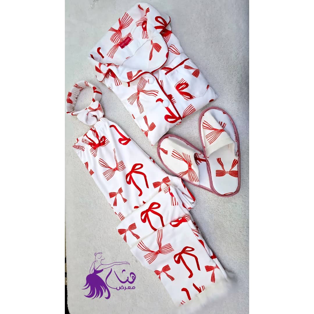 -بيجاما مخمل وجهين مبطنة بأزرار +سليبر+ربطة شعر