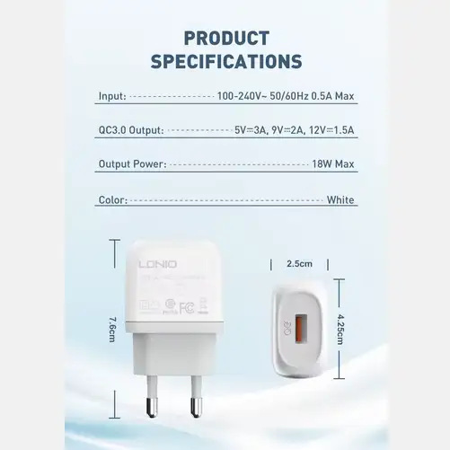 شاحن LDNIO A1209Q باستطاعة 18 واط ( شحن سريع)