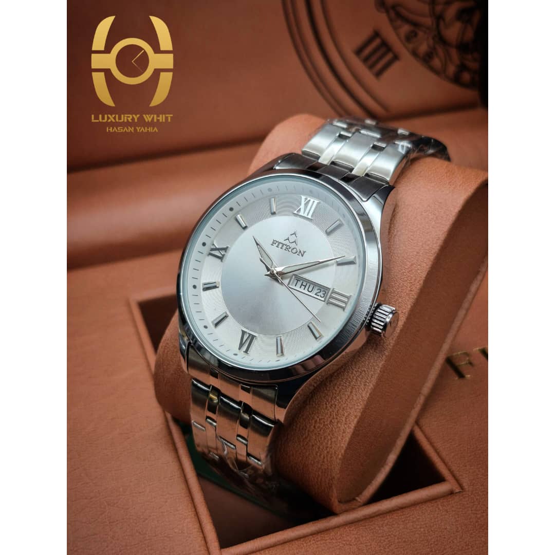FITRON QUARTZ HIGH-QUALITY -ساعة شبابية من فيترون -الحركة كوارتز -عداد شهري يومي -شعار الماركة على قفل الساعة -المقاس: 40mm -جودة عالية -بوكس جلد كبير من الشركة