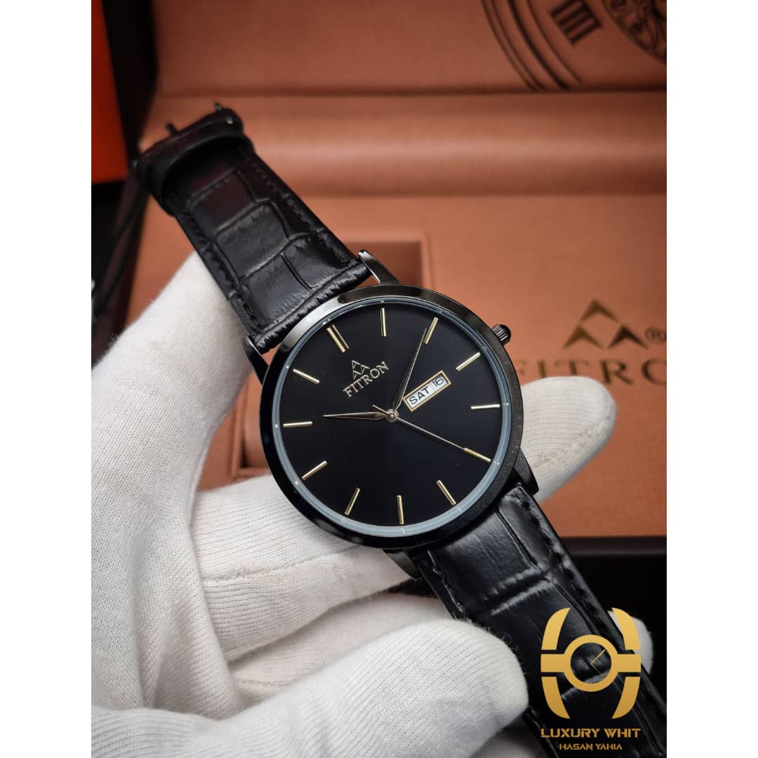 FITRON QUARTZ HIGH-QUALITY -الحركة كوارتز -عداد شهري يومي -سوار الساعة نوع جلد مختوم باسم الماركة -جودة عالية -مرفقة مع علبة جلد وكيس وكرت من الشركة
