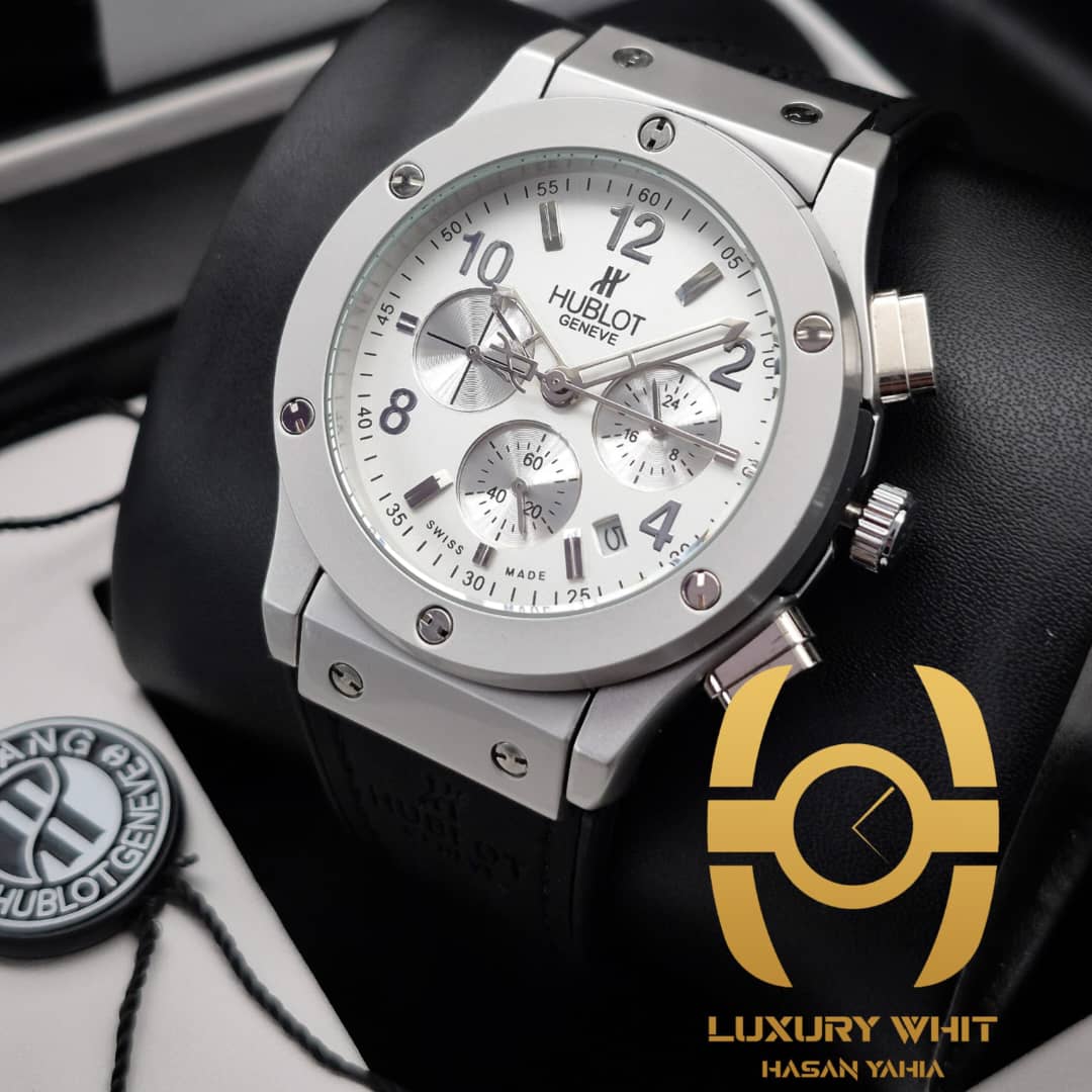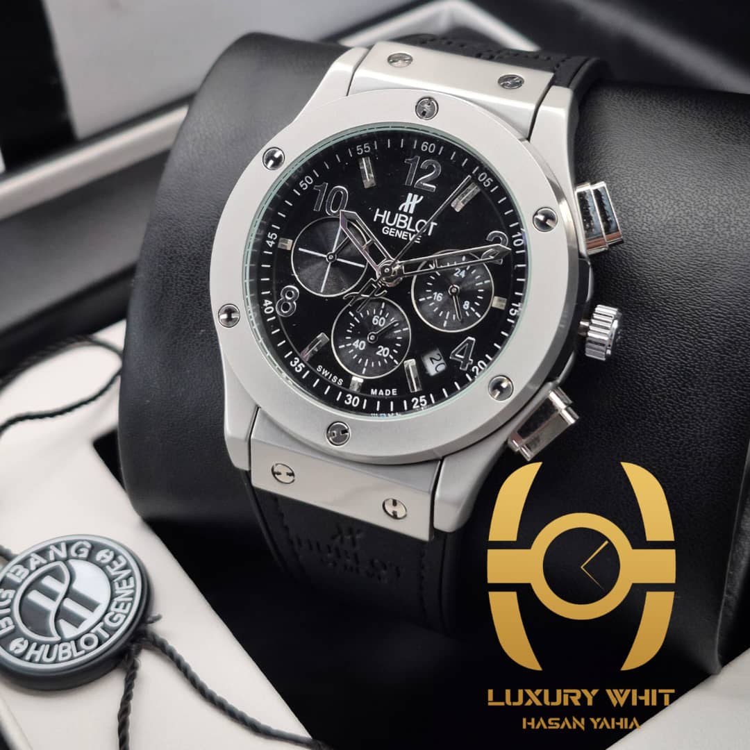 HUBLOT CHRONOGRAPH HIGH-QUALITY QUARTZ COPY 2 -ساعة شبابية من هيبلوت -الحركة كوارتز -عداد شهري -كرونوغراف -سوار الساعة نوع ربر مع شامواه مختوم باسم الماركة -قفل ستانلس ستيل مختوم باسم الماركة -جودة عالية -بوكس جلد من الشركة مع كامل الملحقات