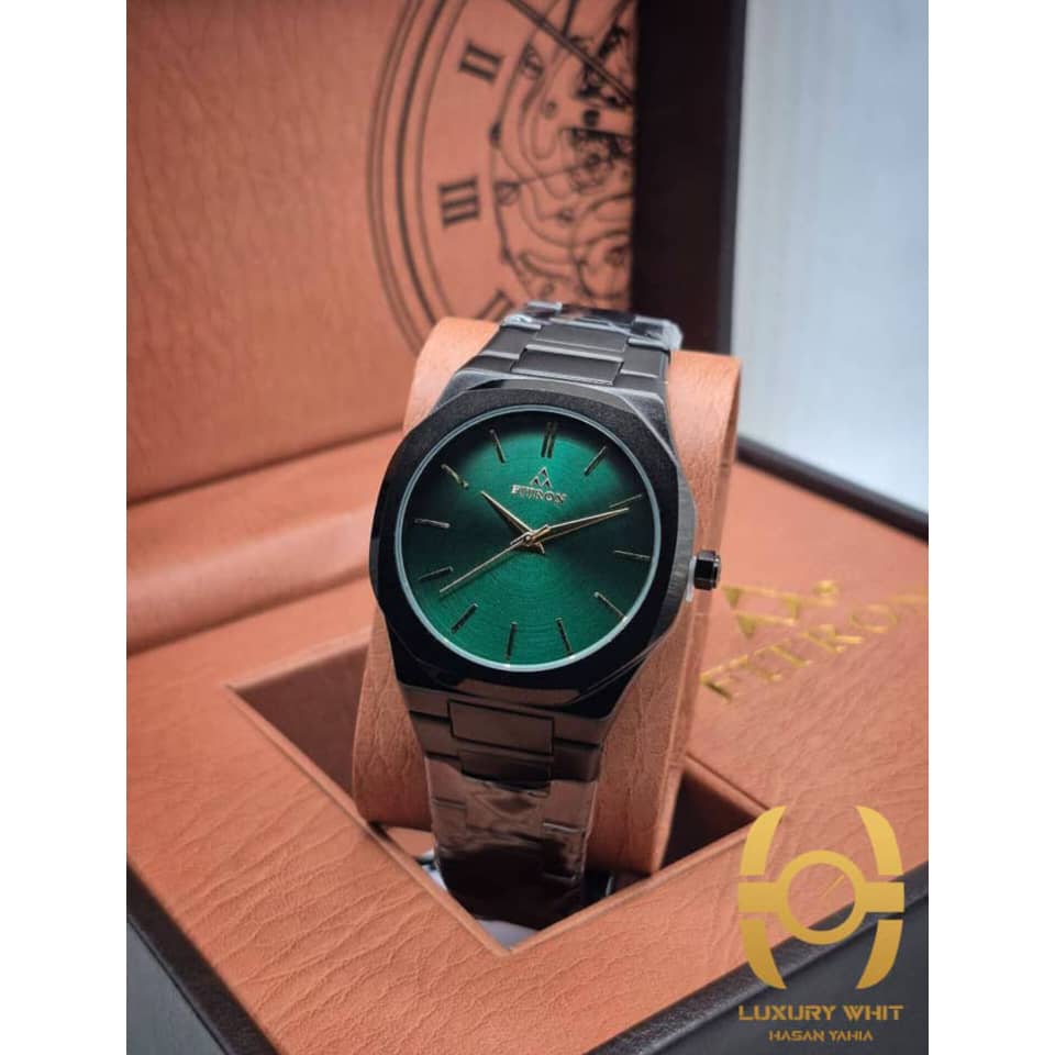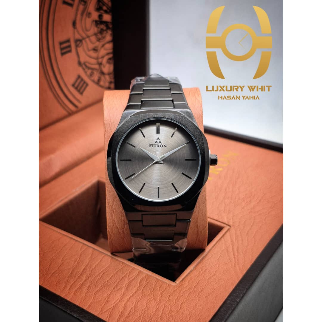 FITRON QUARTZ HIGH-QUALITY -كامل الساعة ستانلس ستيل -الحركة كوارتز -جودة عالية -شعار الماركة على مفتاح الساعة -قفل ستانلس ستيل نوع ضغط -مقاس 40mm -بوكس جلد كبير من الماركة