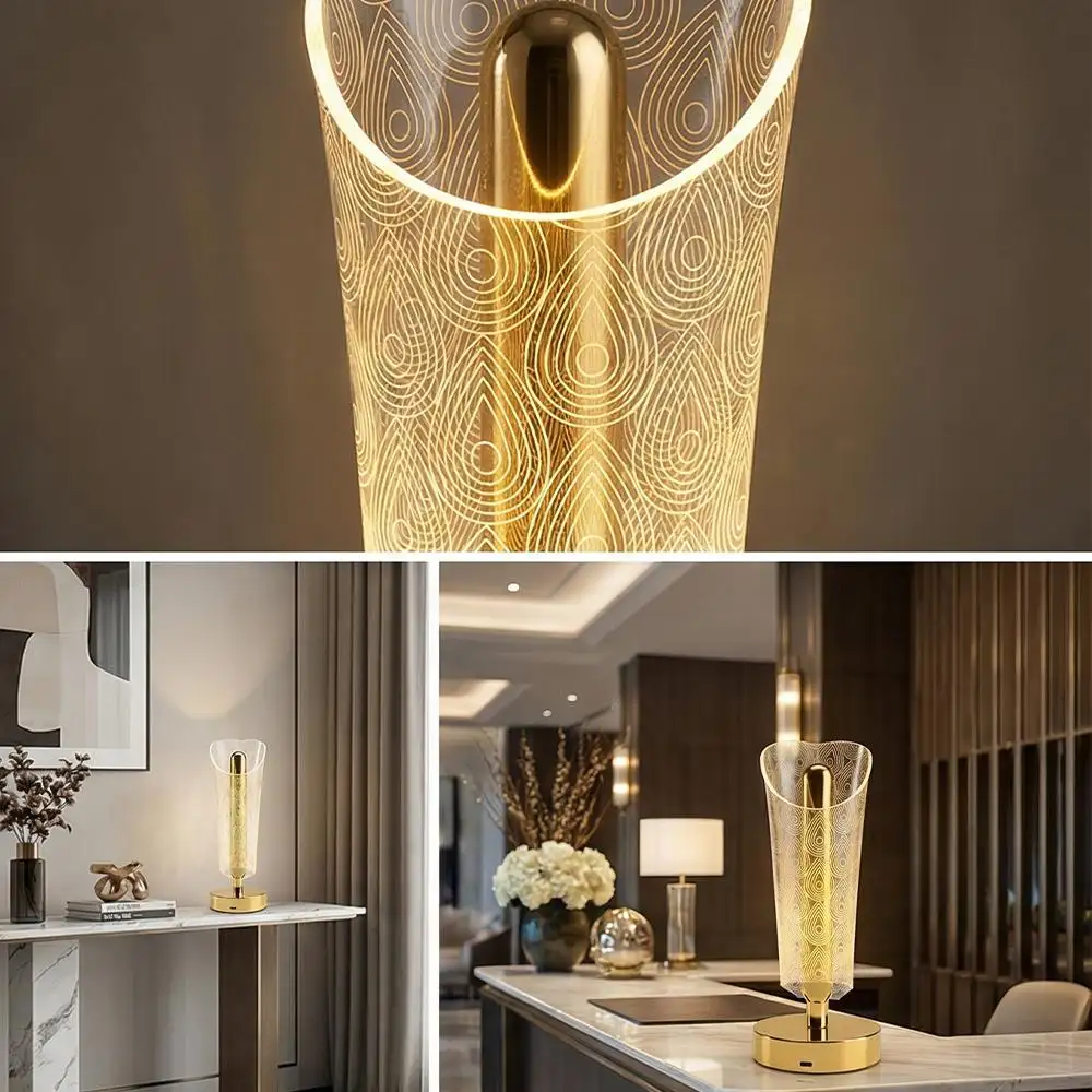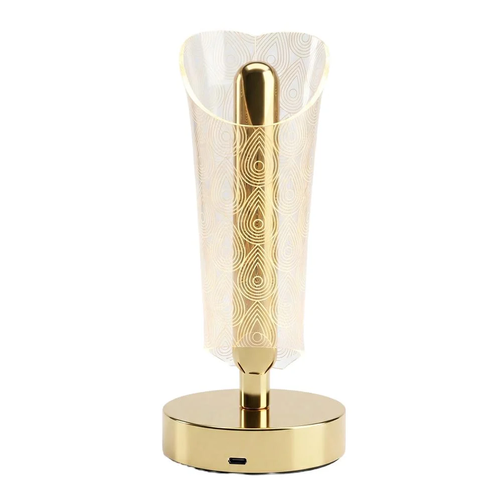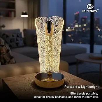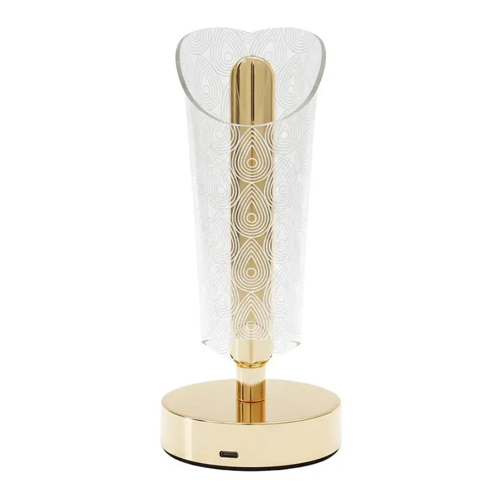 • أباجورة بتصميم عصري فاخر تجمع بين الإضاءة الجمالية والمواد الراقية. تتكون من الأكريليك الذهبي الذي يمنحها مظهراً فاخراً ولمسة ديكور مميزة، مع قاعدة ثابتة توفر استقراراً ممتازاً. تعمل عبر USB أو من خلال الشحن، وتأتي بـ 3 أنماط إضاءة يمكن التبديل بينها بسهولة. كما أنها مزوّدة بزر تشغيل يعمل باللمس لتجربة استخدام سلسة وحديثة.