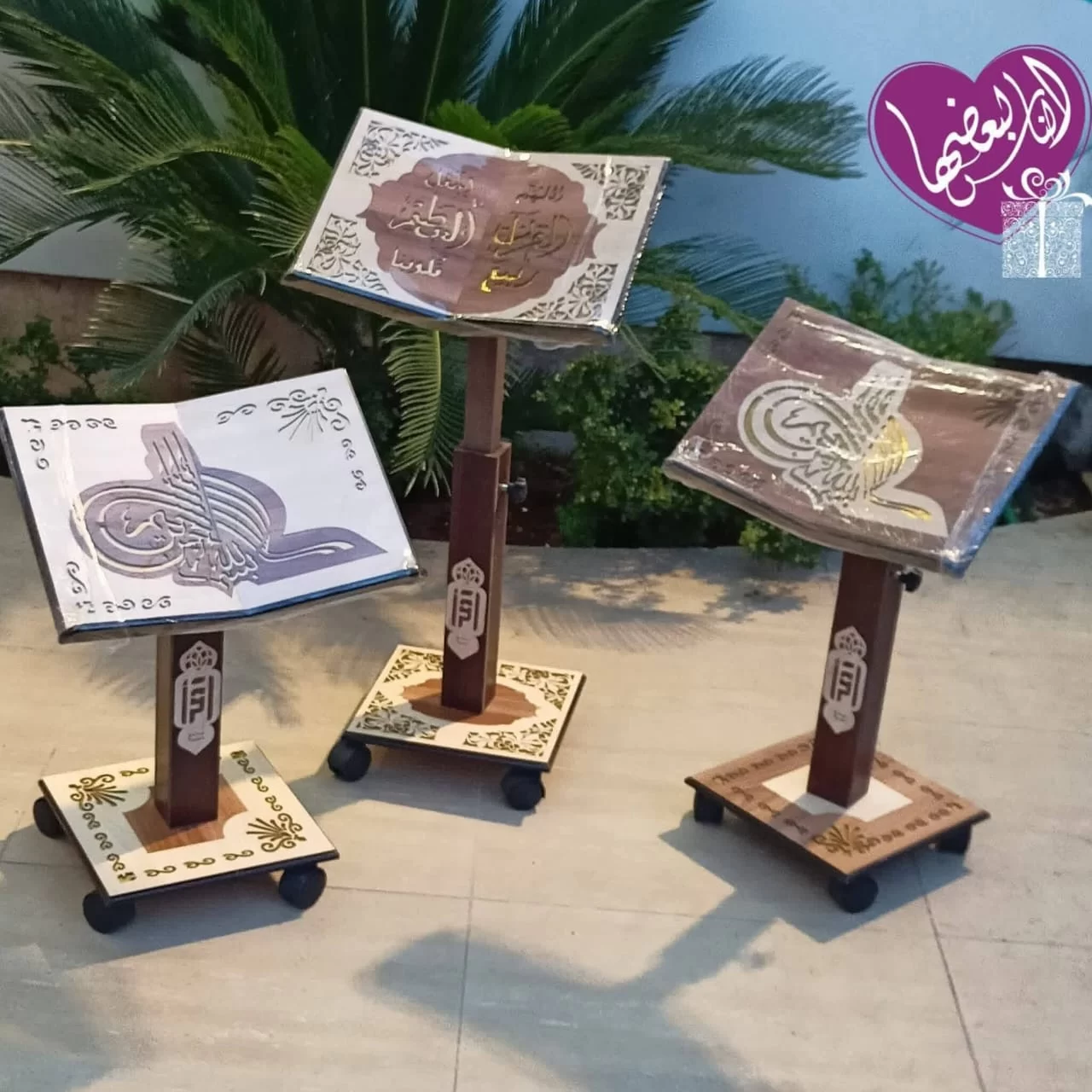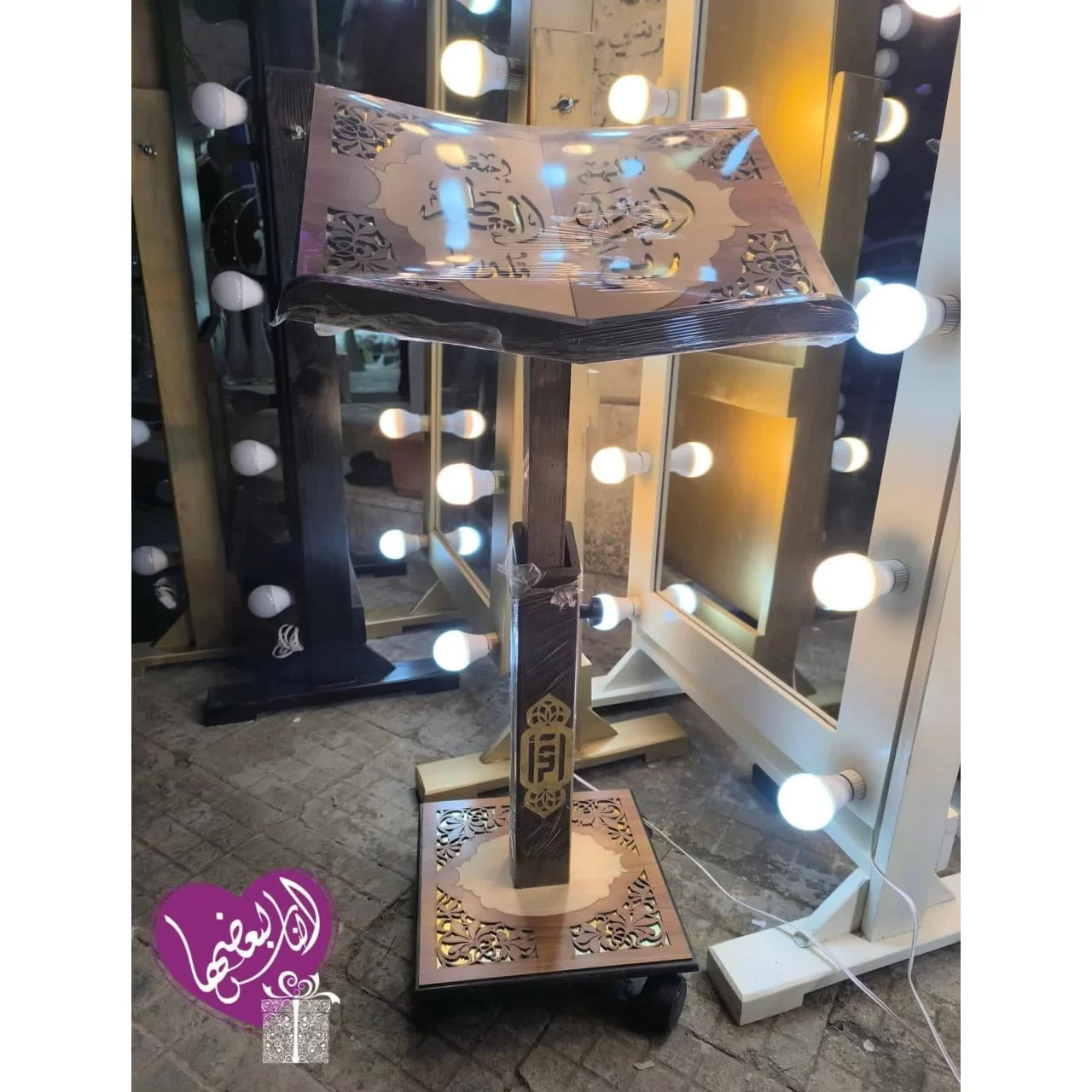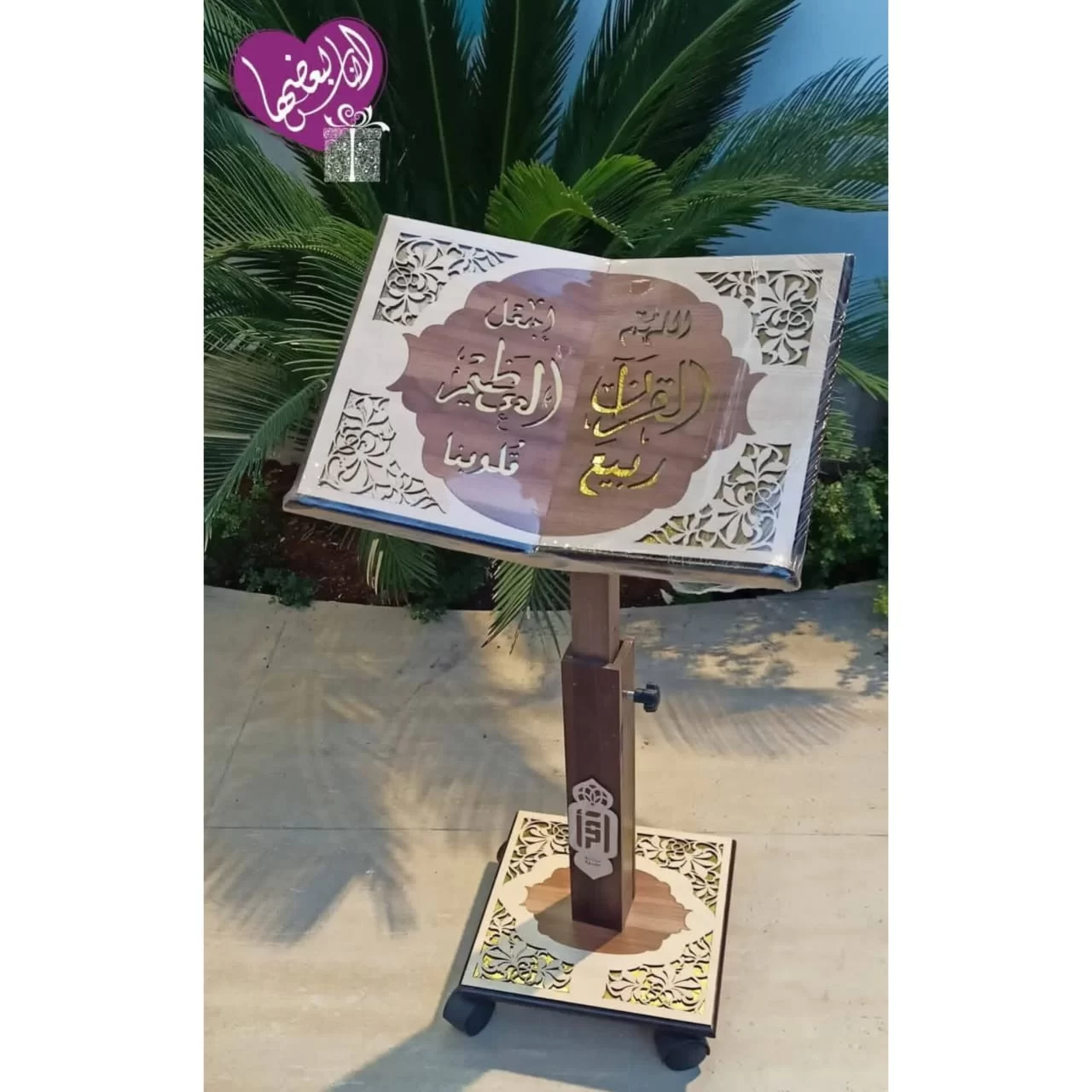 -كرسي مصحف خشبي قابل للتعديل مزود بعجلات لسهولة التنقل.
