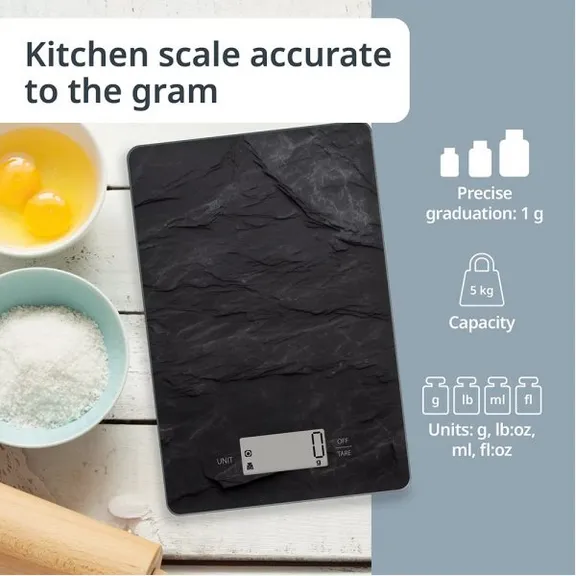 • الحد الأقصى للوزن المسموح به هو ٥ كجم. • يقيس بزيادات قدرها ١ غرام. • إمكانية اختيار وحدات القياس (جم/مل).