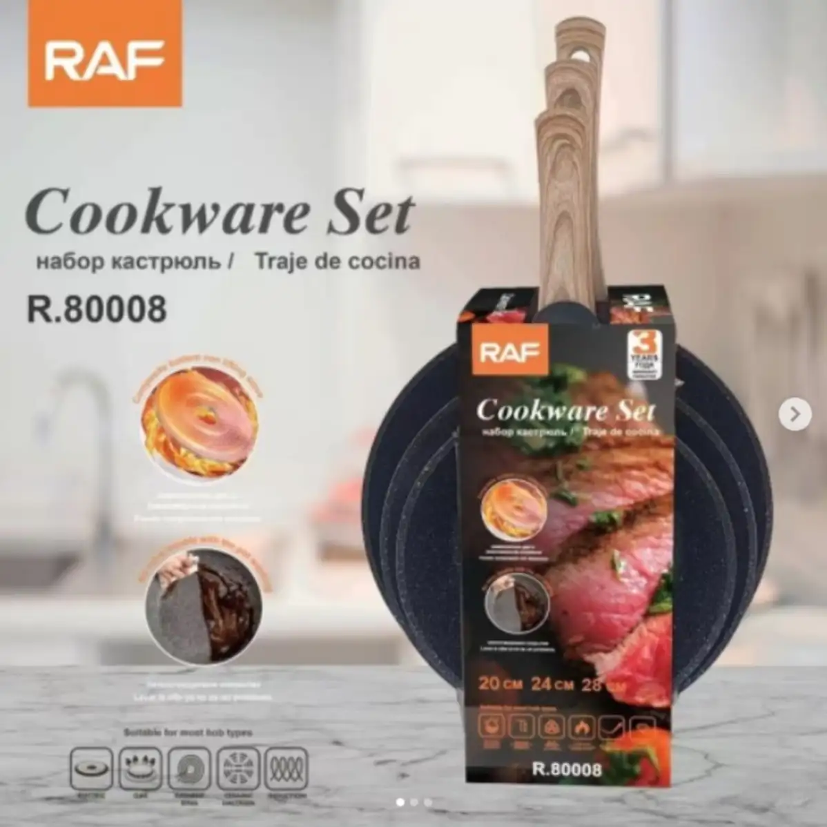 مجموعة طوايات طبخ غرانيت بثلاث قياسات RAF R.80008