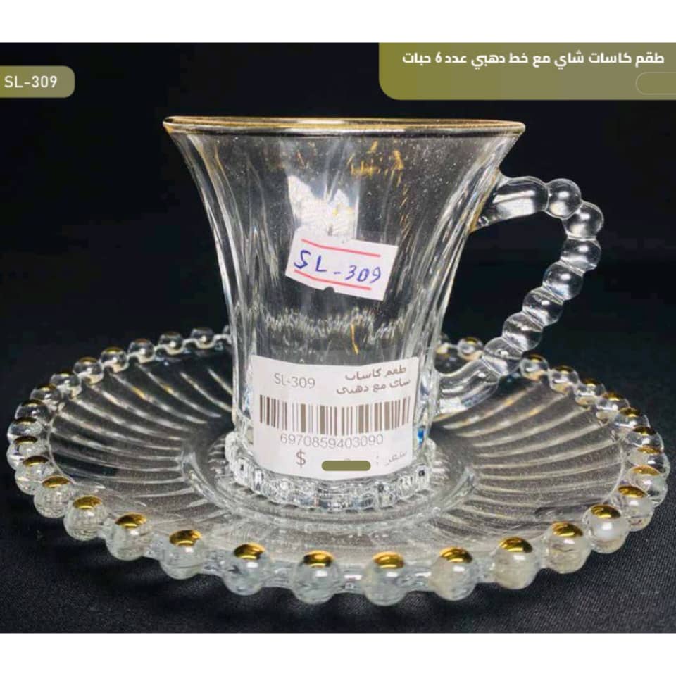-طقم كاسات شاي محجّر مذهّب مع أطباق