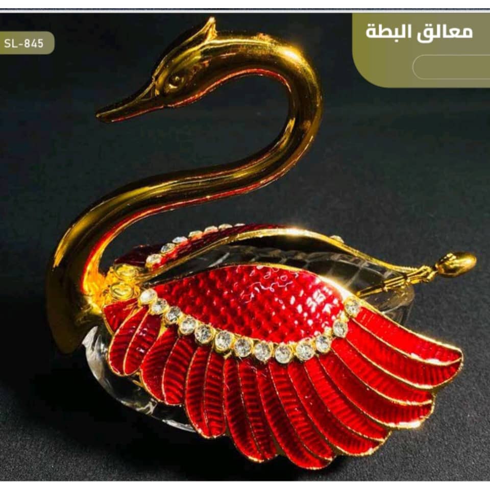 -سكرية على شكل بجعة، مصنوعة من المعدن المطلي باللون الذهبي والأحمر