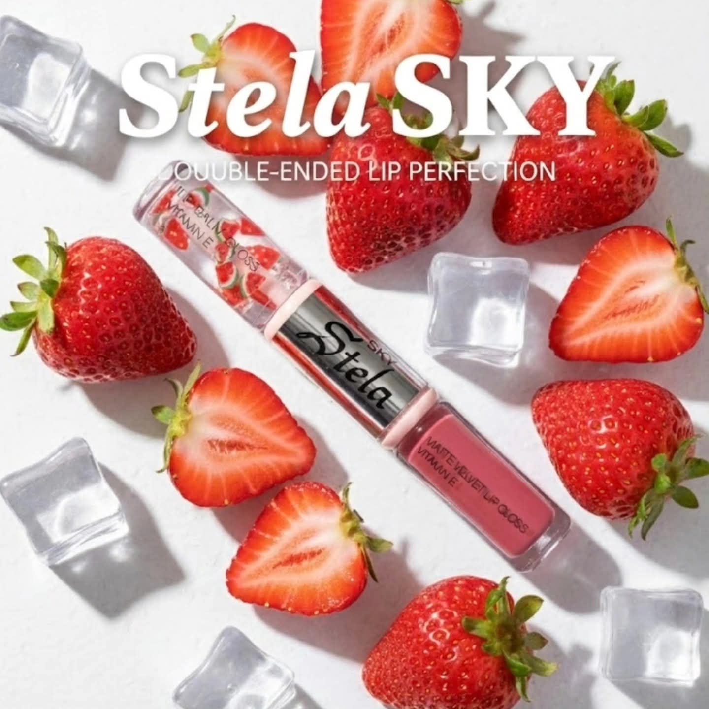 -أحمر شفاه ذو طرفين من stela sky؛ طرف بلمسة مطفية (Matte) وطرف بلمسة لامعة (Gloss). يمتاز بثباته العالي وملمسه الناعم، وغني بفيتامين E