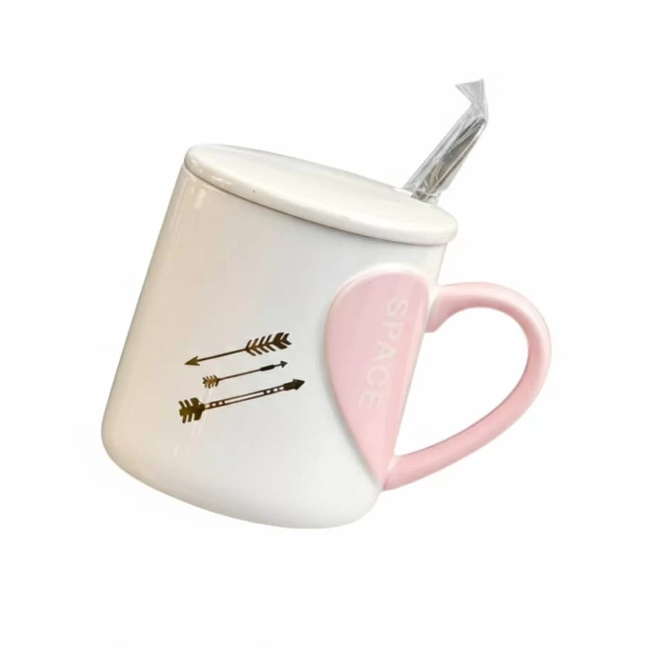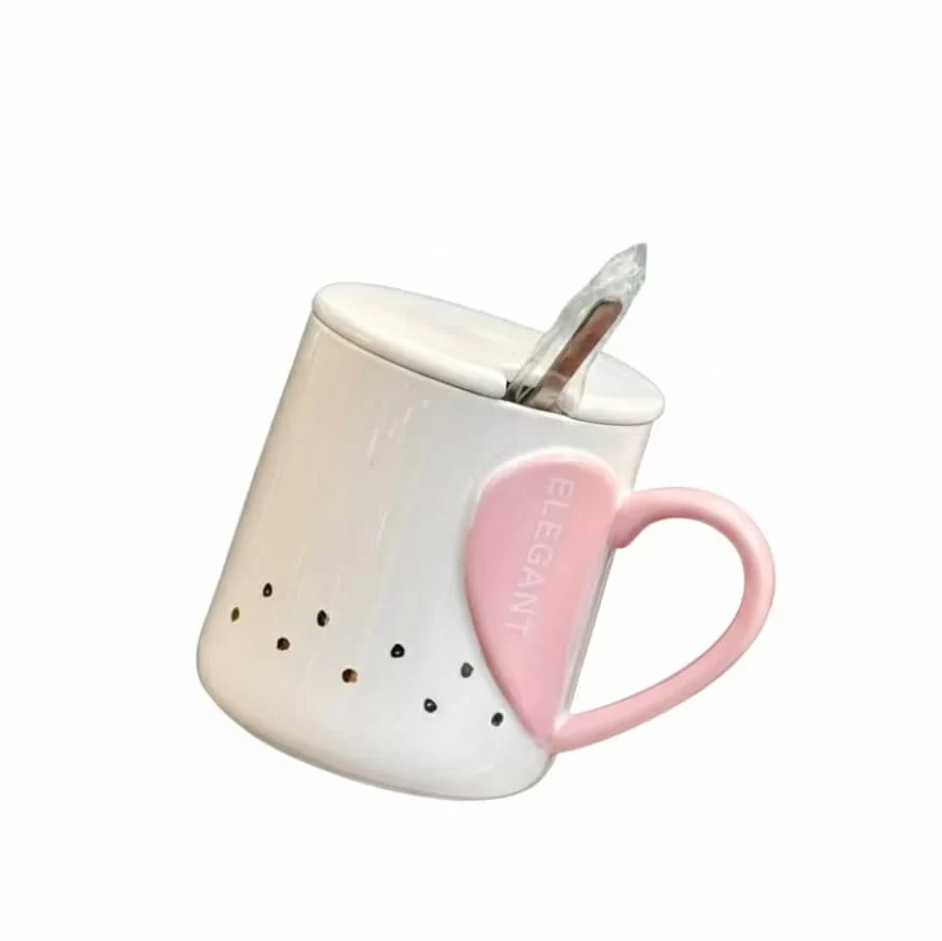 -كوب بورسلان بتصميم قلب مع غطاء وملعقة
