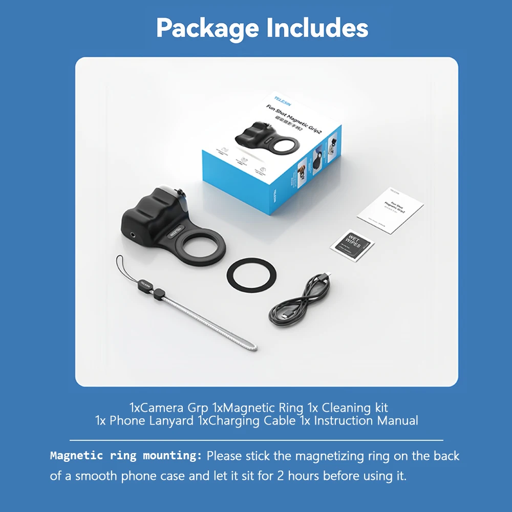 【تحسين الراحة مع تصميم مريح】 صُمم هذا المقبض المغناطيسي للهاتف لتحويل هاتفك الذكي إلى كاميرا احترافية. يتميز بتصميم مريح وصغير الحجم، حيث يُحسّن من قبضتك ويوفر لك التوازن والثبات، كما أنه يناسب جيبك أو حقيبتك بسهولة. — مقبض TELESIN الرسمي (ملاحظة: هذا المقبض لا يشمل حامل ثلاثي القوائم أو إضاءة. إذا كنت بحاجة إليهما، يُرجى شراء هذه المجموعة ASIN: B0GCDPL35G)