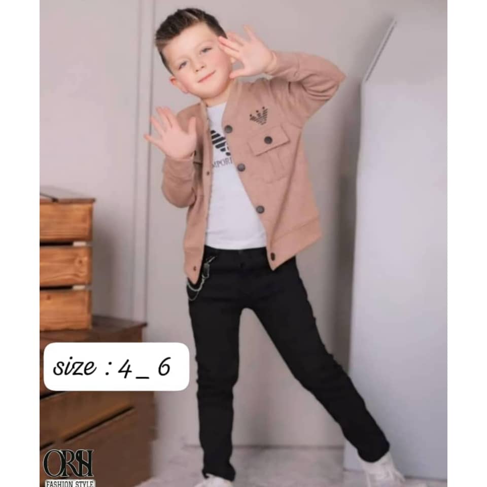 -جاكيت+بلوزة +بنطال -قماش قطن معجن -بنطال جينز جونسون -القياسات: 4/6 -توصيل في حلب وشحن للمحافظات Or