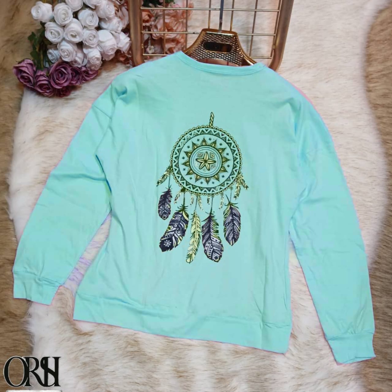 -بلوزة نسائية كم طويل -قماش قطن سنغل خريفي -طباعة ترانسفير أجنبي -طول 60 سم -توصيل في حلب وشحن للمحافظات Or