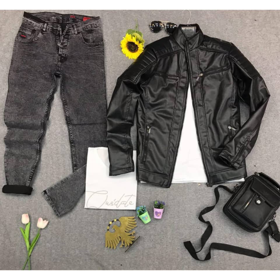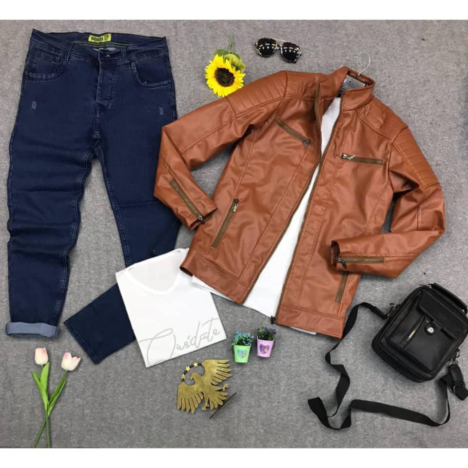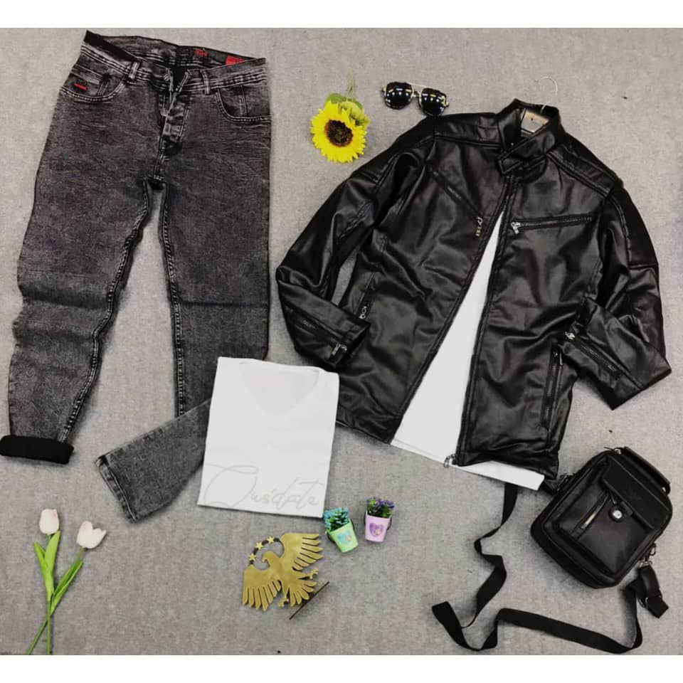 -جاكيت جلد مبطن فرو -كنزة قطن .بنطال جينز -المقاسات: M.l.xl.xxl -توصيل في حماة وشحن للمحافظات Tf