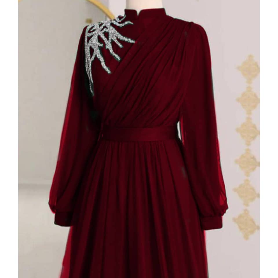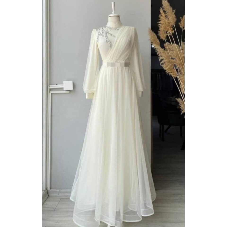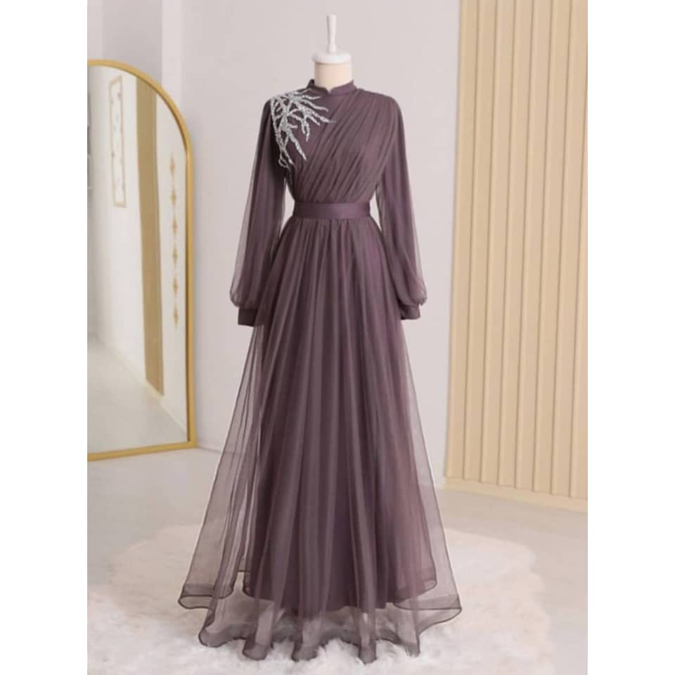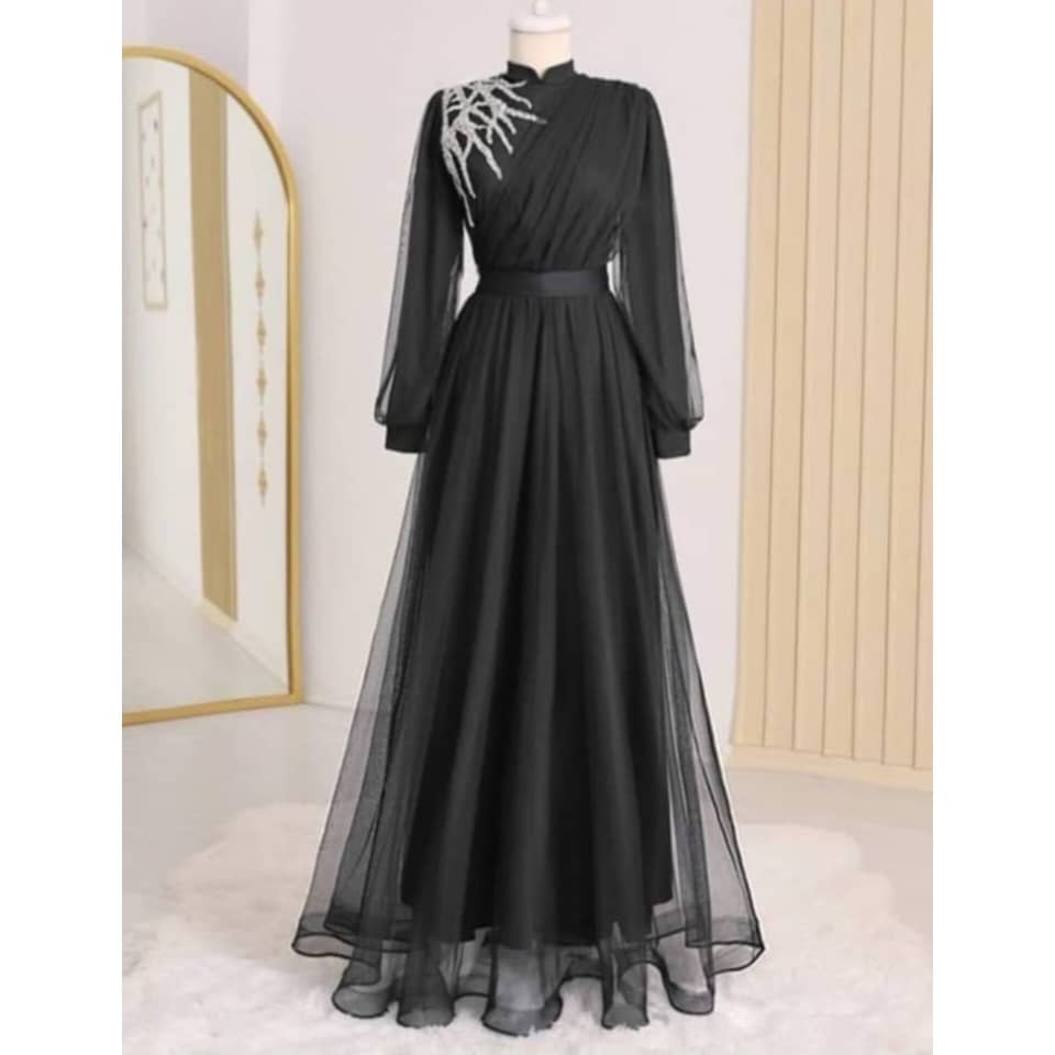 -قماش تول مبطن بالكامل مع شيفون وأحجار ريزين