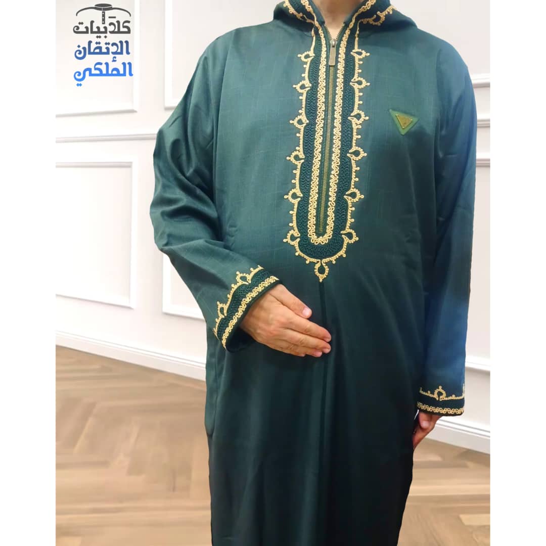 -جلابية مغربية بأكمام طويلة مع قبعة