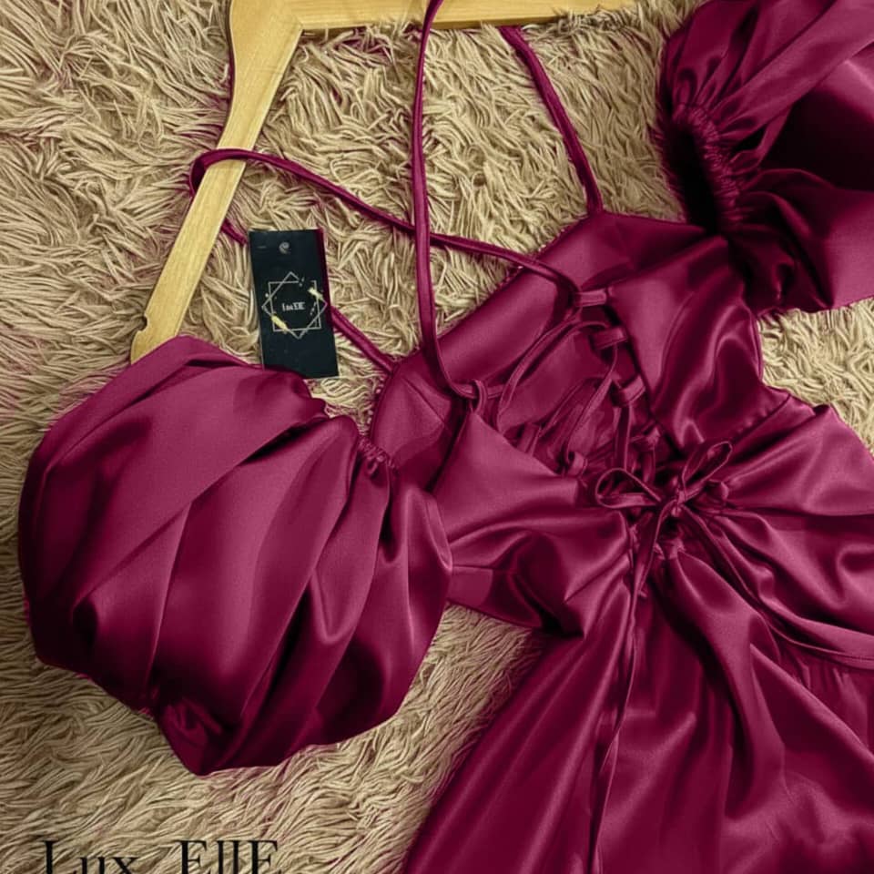 -فستان ساتان مع رباط في الظهر مع حجر ستراس على الصدر