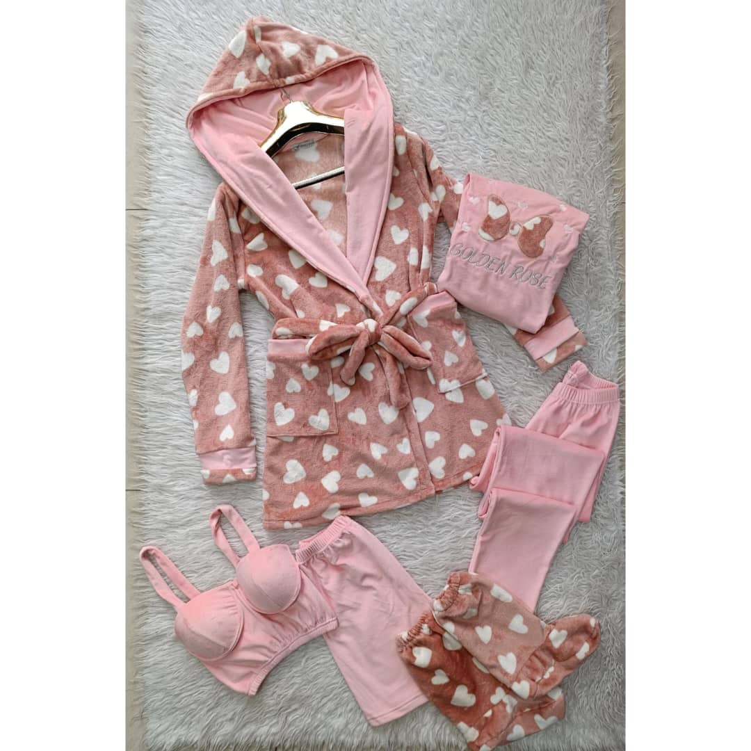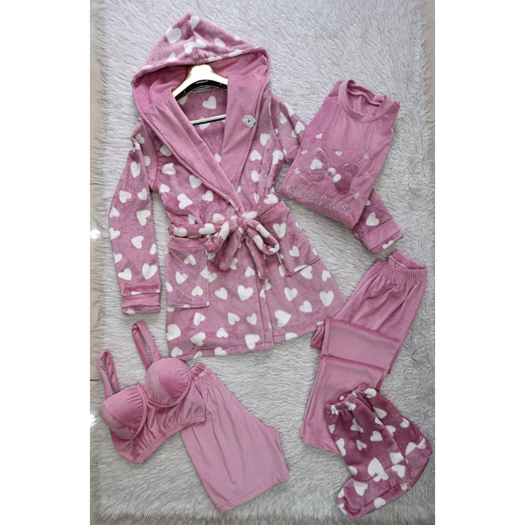 -كمينو هودي+ بلوزة بكم+ بنطال+ بروتيل+