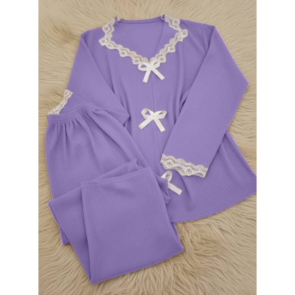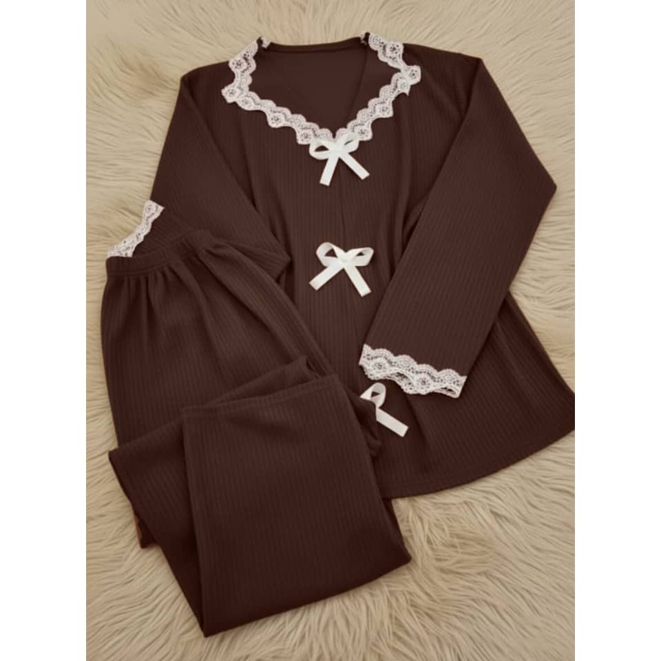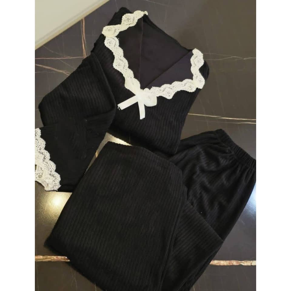 -بيجاما قماش مخمل محزز مع دانتيل