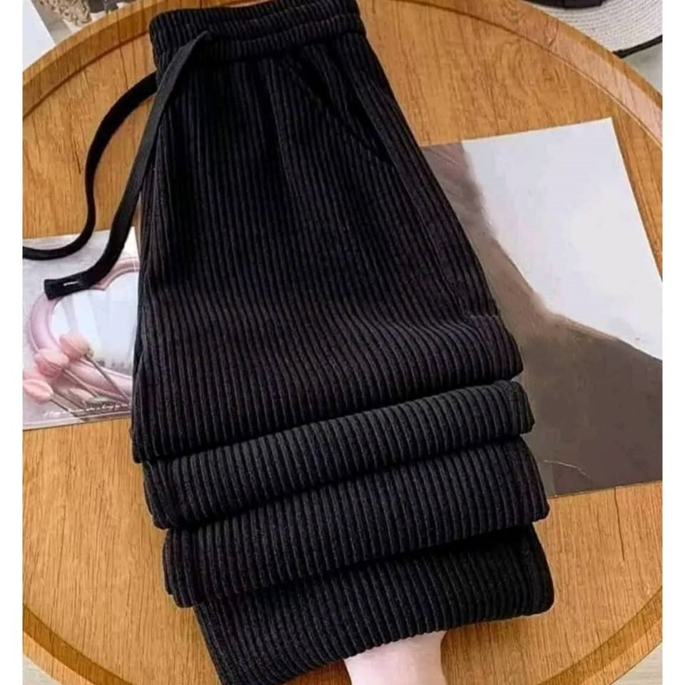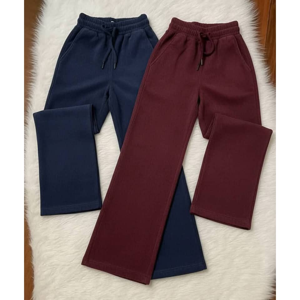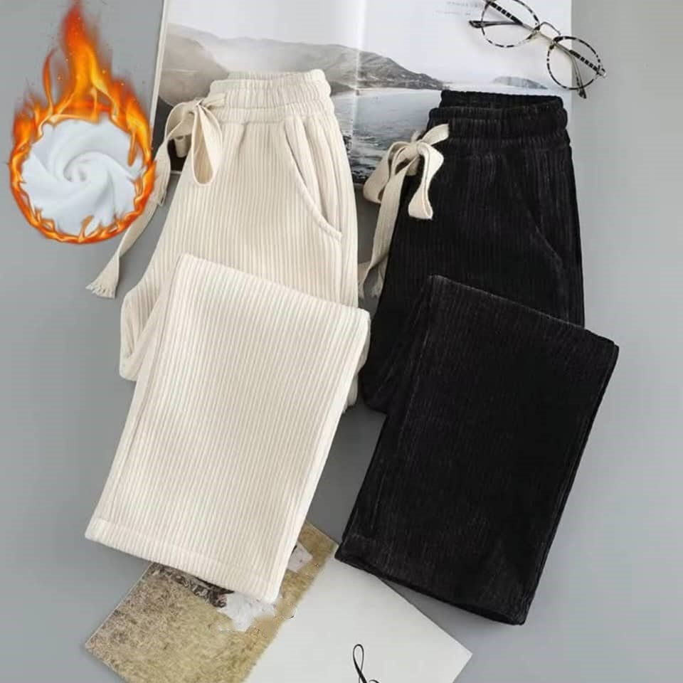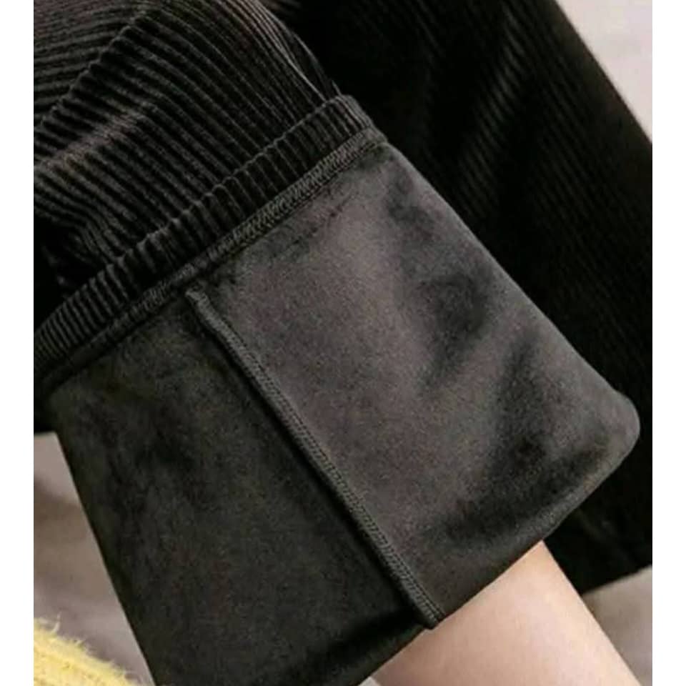 -بنطال قماش مخمل محزز مصوف من الداخل