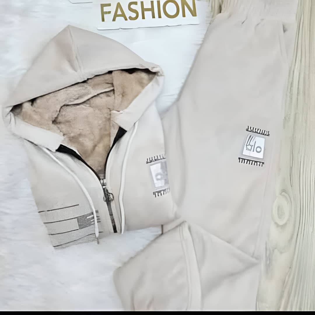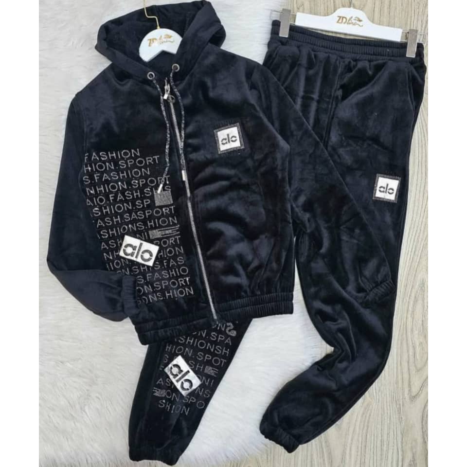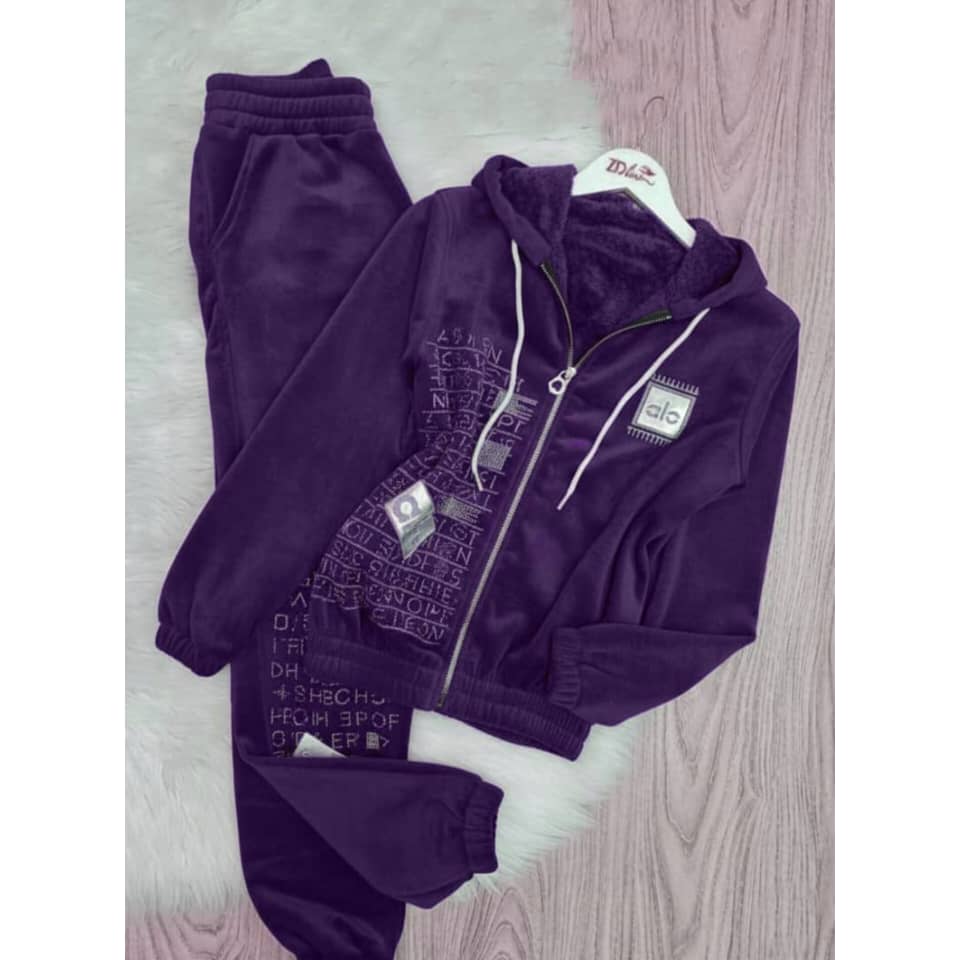 -بيجاما قماش مخمل مبطن فرو مع ستراس