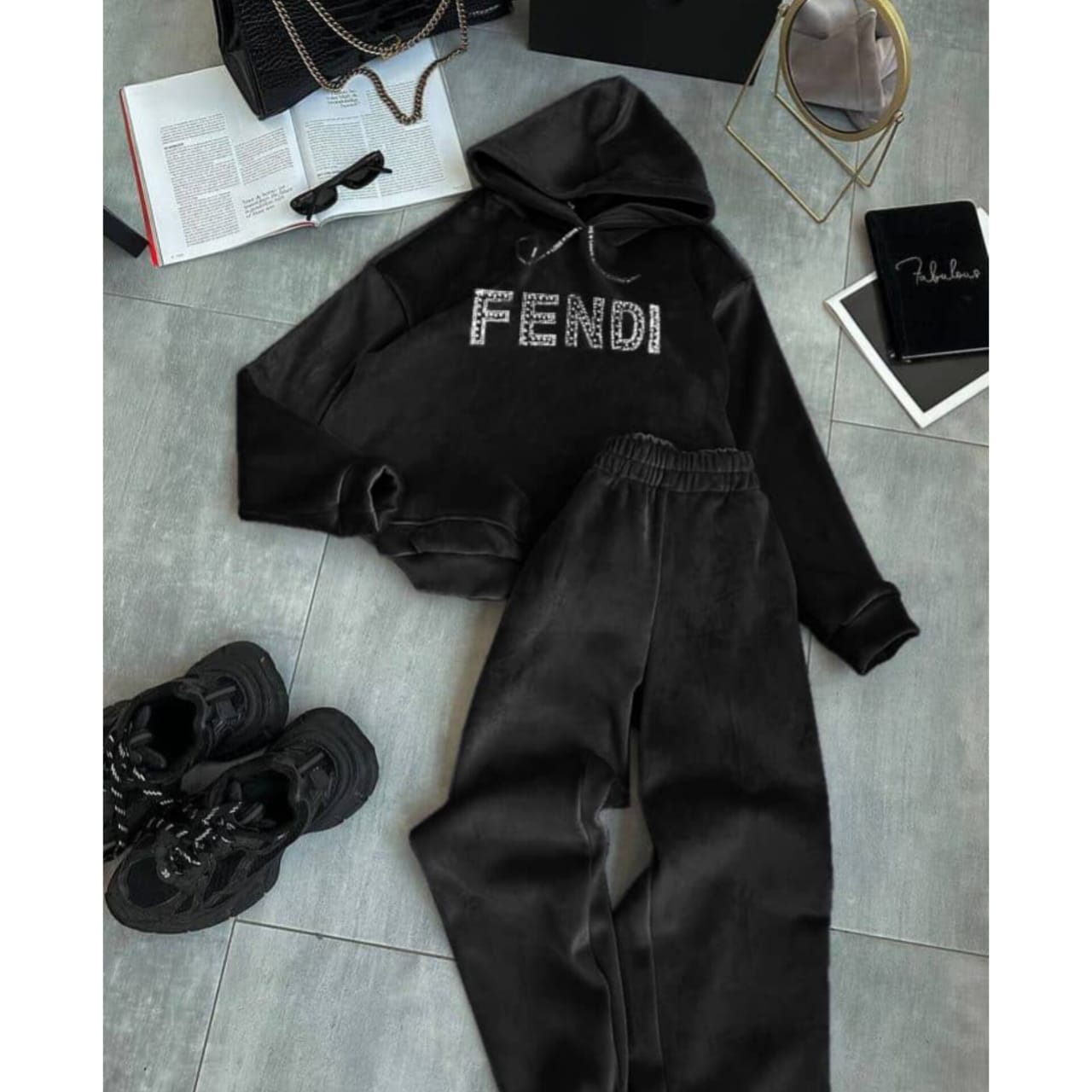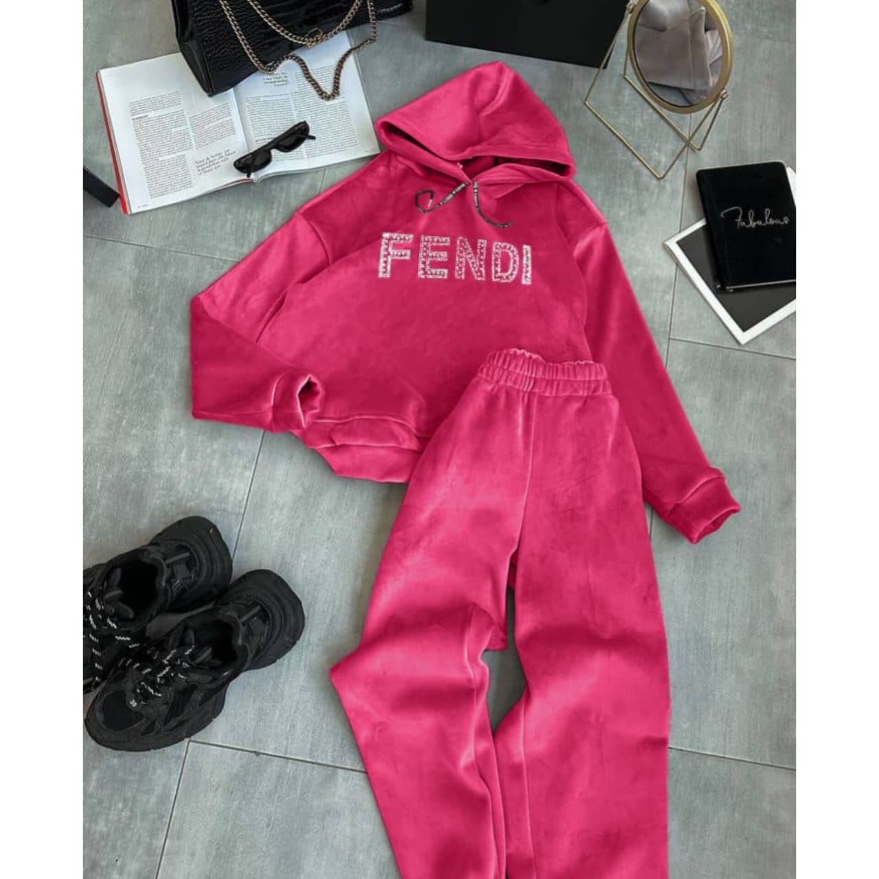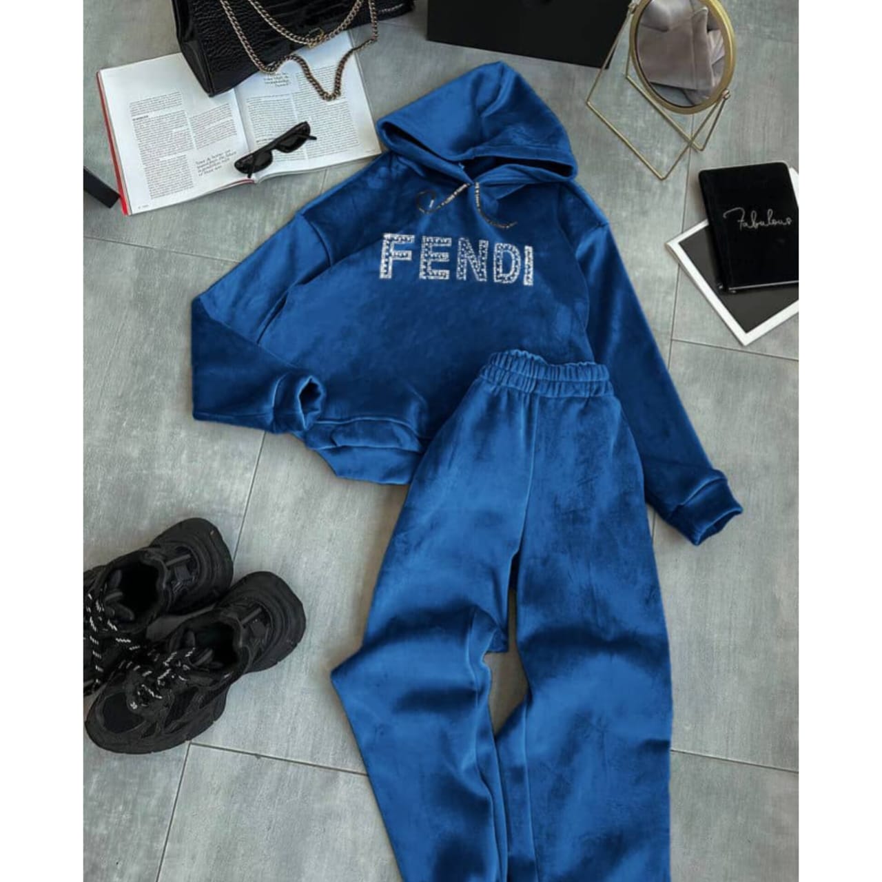 -بيجاما قماش مخمل وجهين مع ستراس وحبات لولو