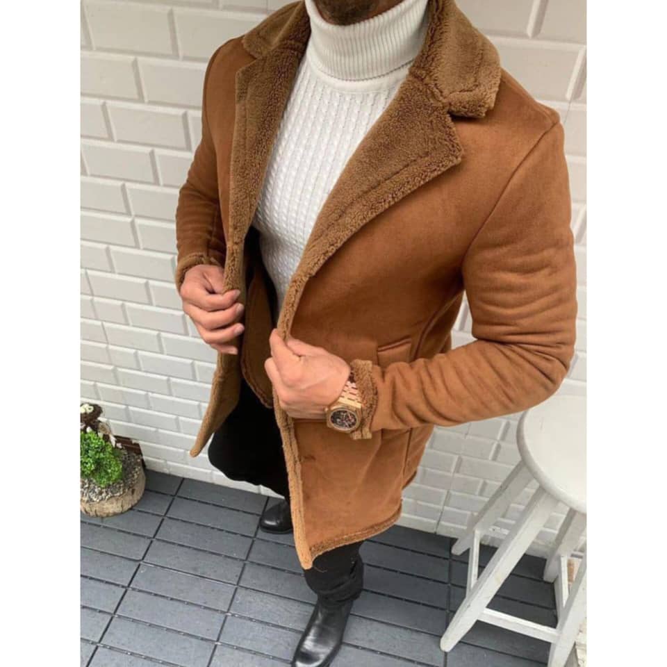 -مانطو قماش شامواه جلد غزال مبطن فرو