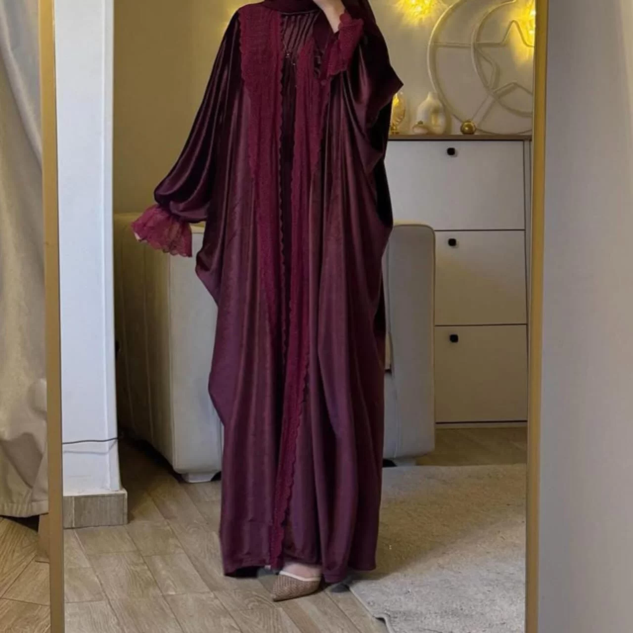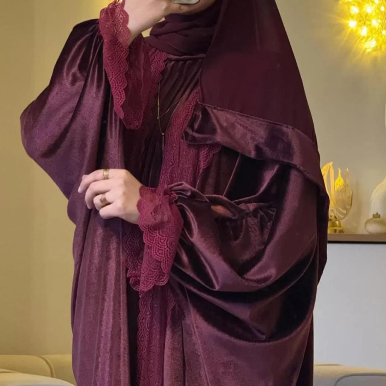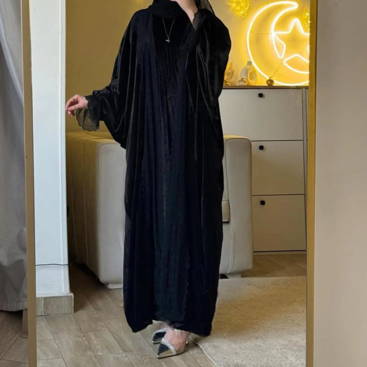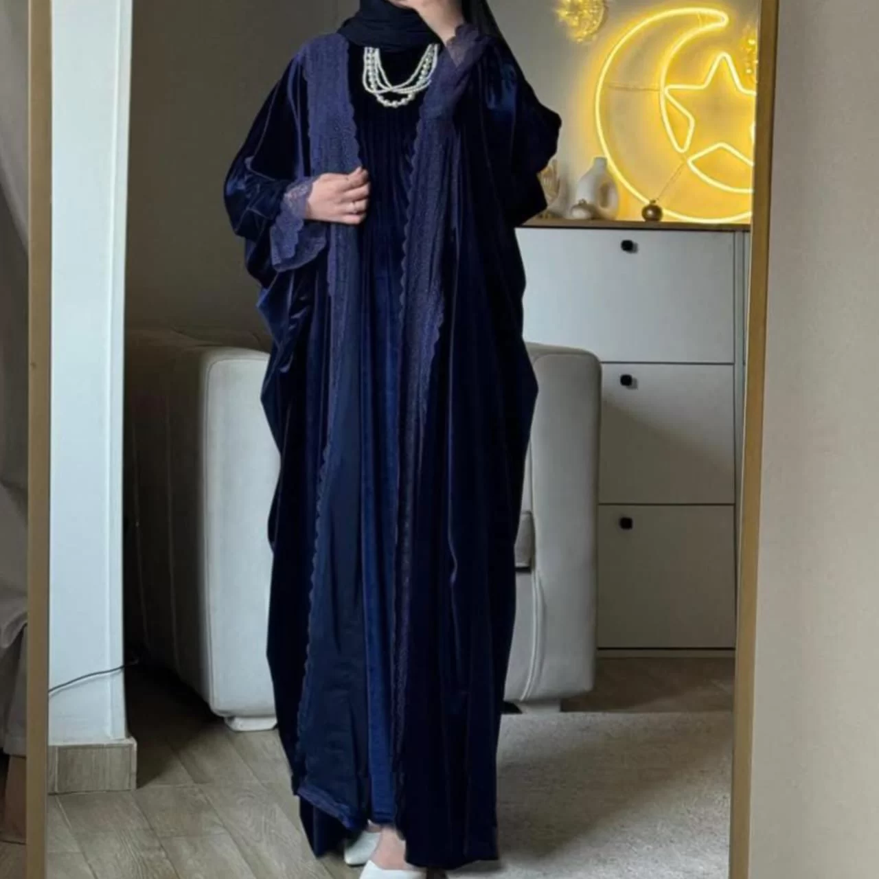 -عباءة نسائية مع فستان قماش مخمل استيكس مع دانتيل
