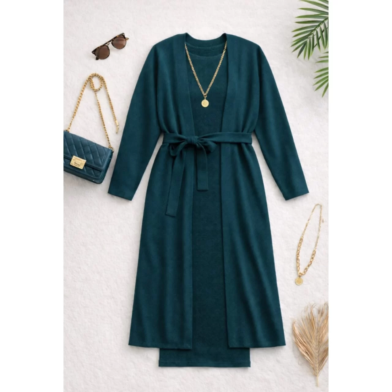 فستان مع جاكيت تريكو خيط أكرليك