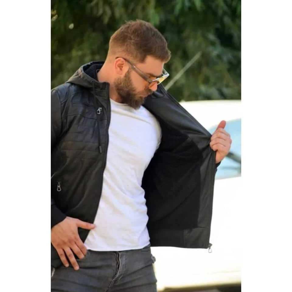 -جاكيت جلد أجنبي معالج مبطن فرو ومحشو ديكرون