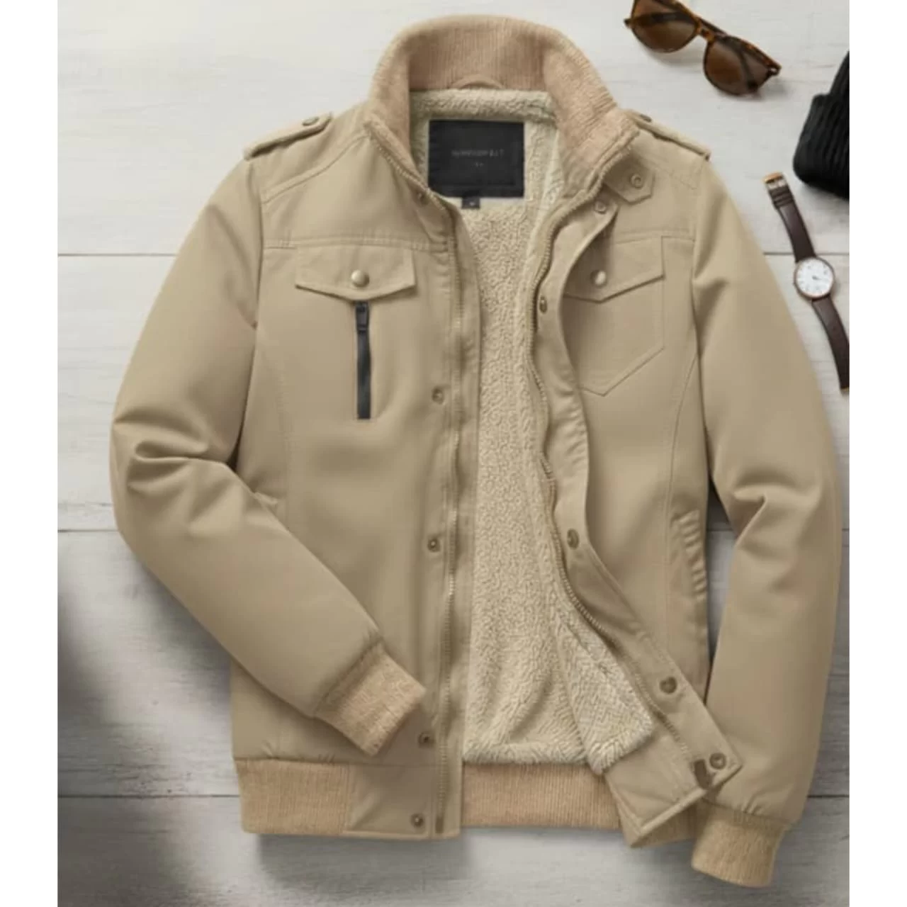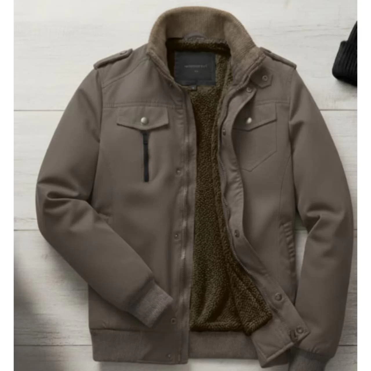 -جاكيت كتان مبطن فرو في الصدر والظهر وساتان في الأكمام