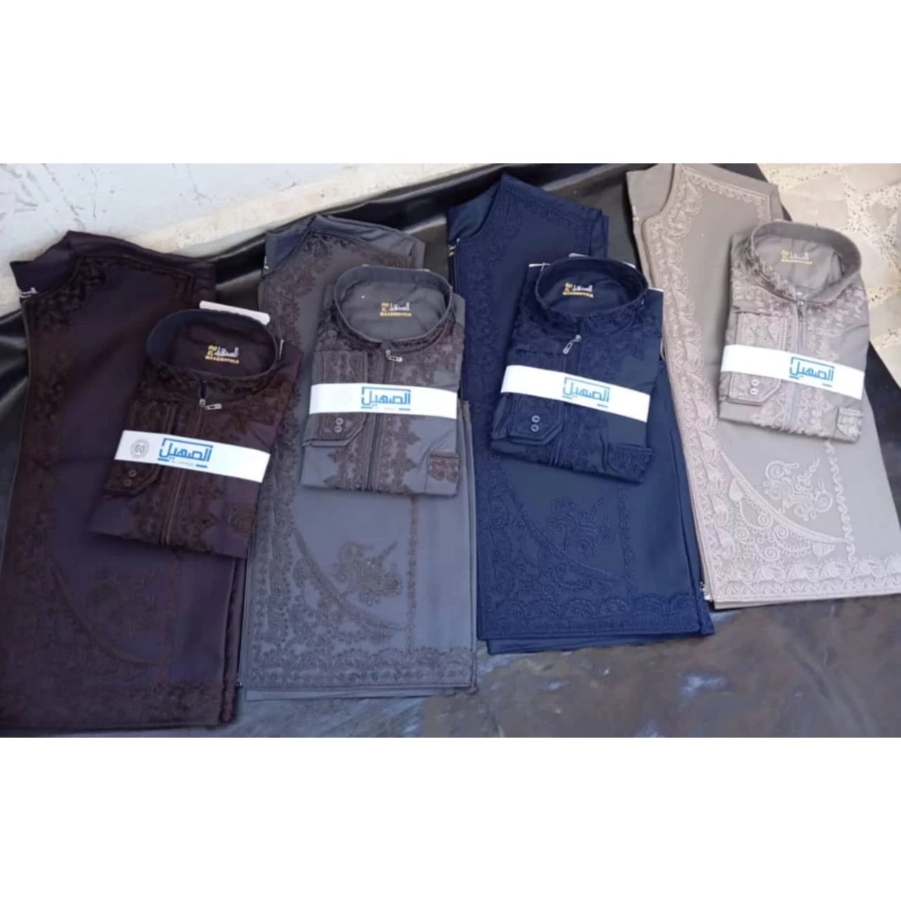 جلابية رجالية مع صدرية قماش كبردين نخب أول تخريج ماكينة