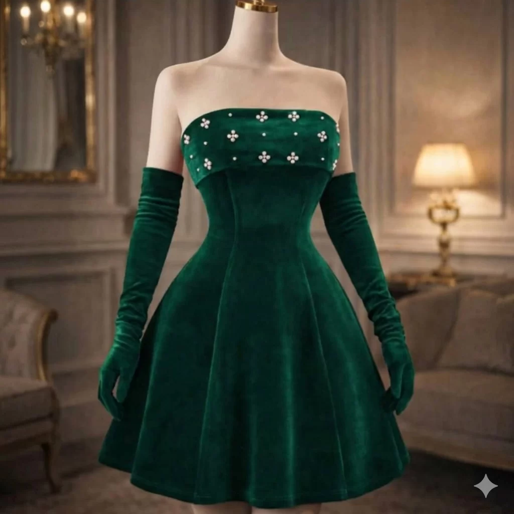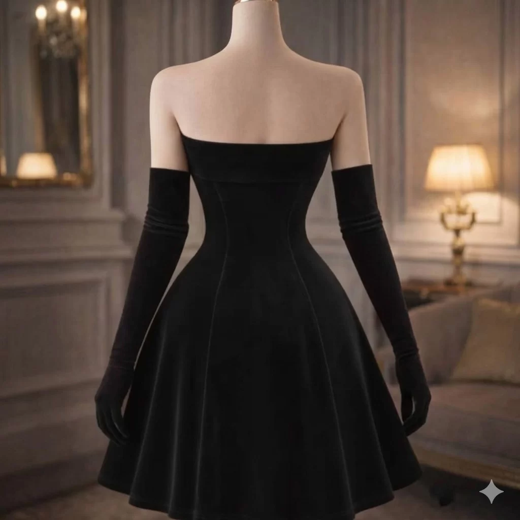 فستان سهرة سواريه مع قفازات قماش مخمل إستيكس أجنبي