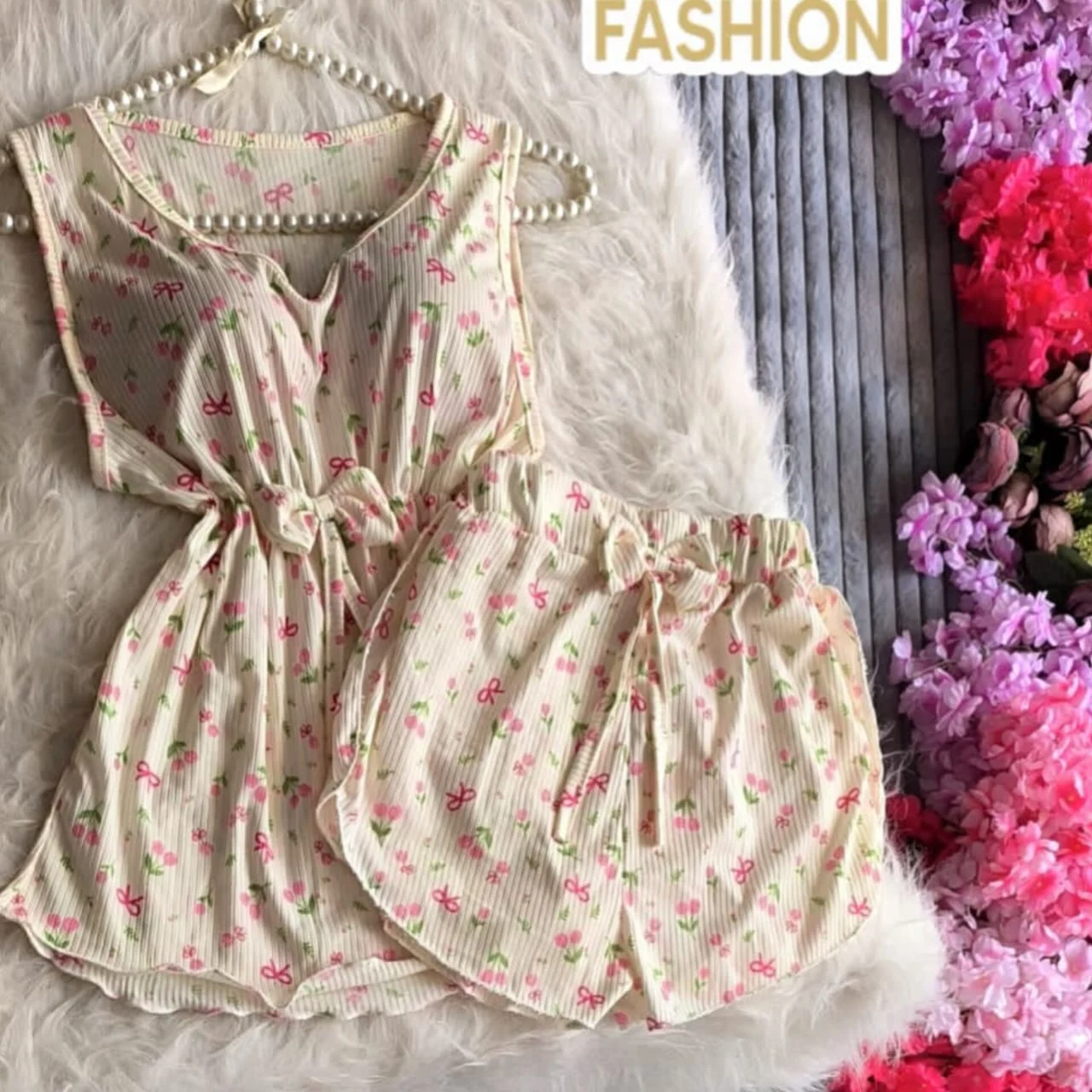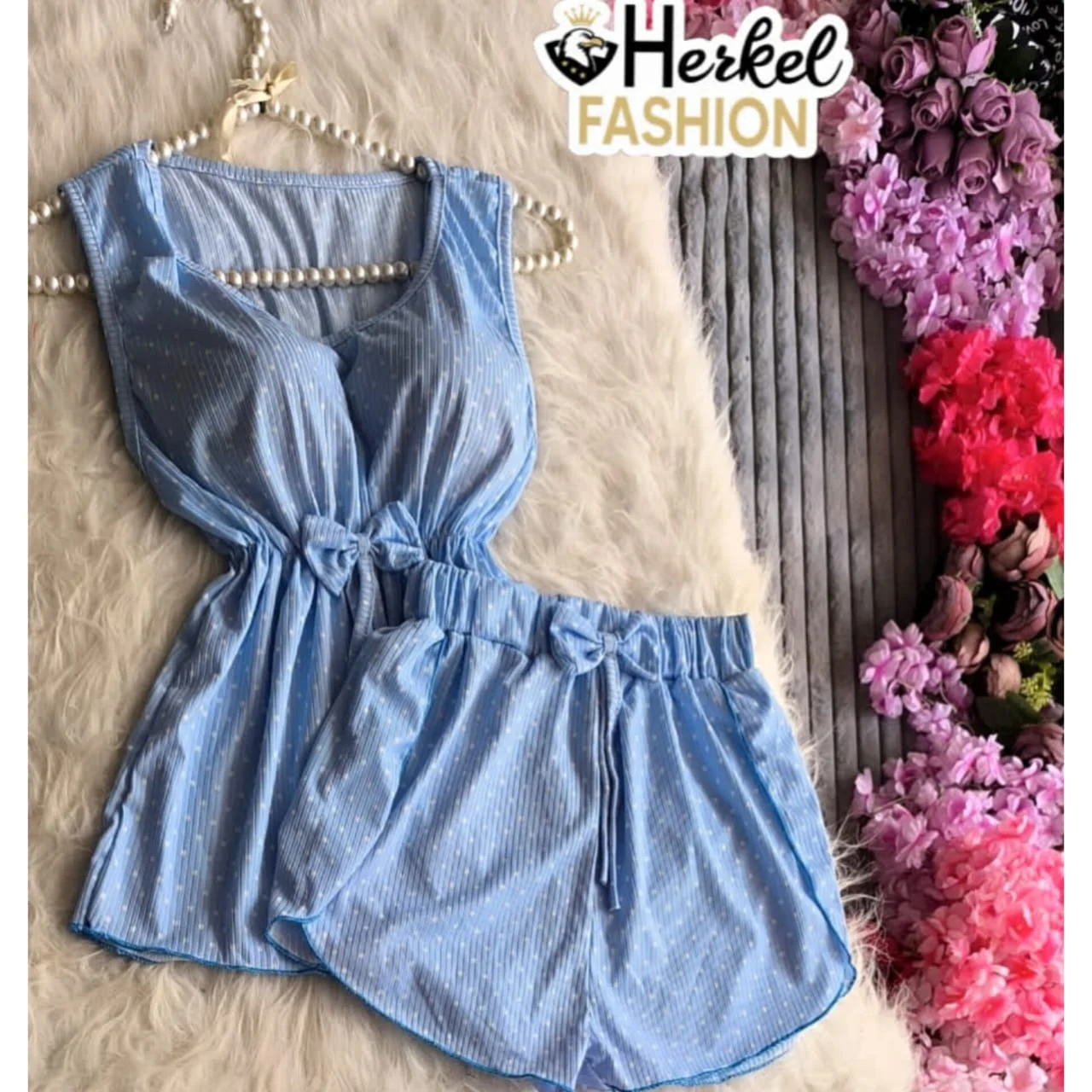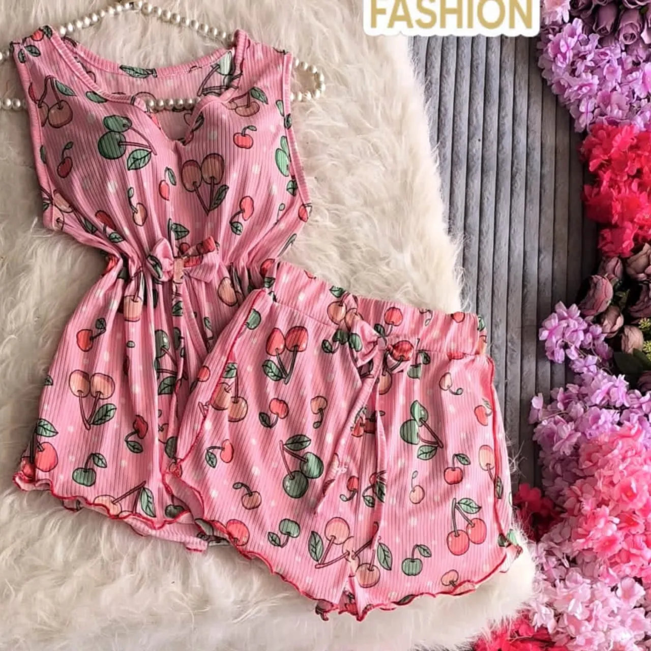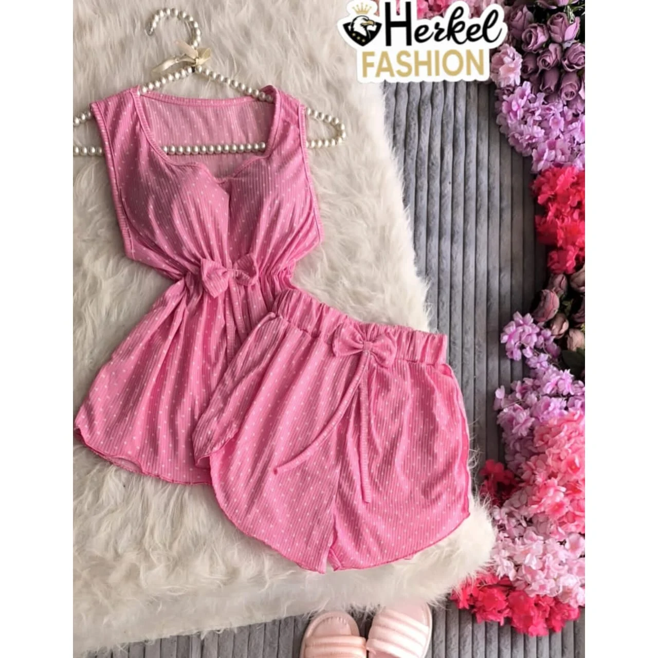 طقم شورت قماش ريب ليكرا