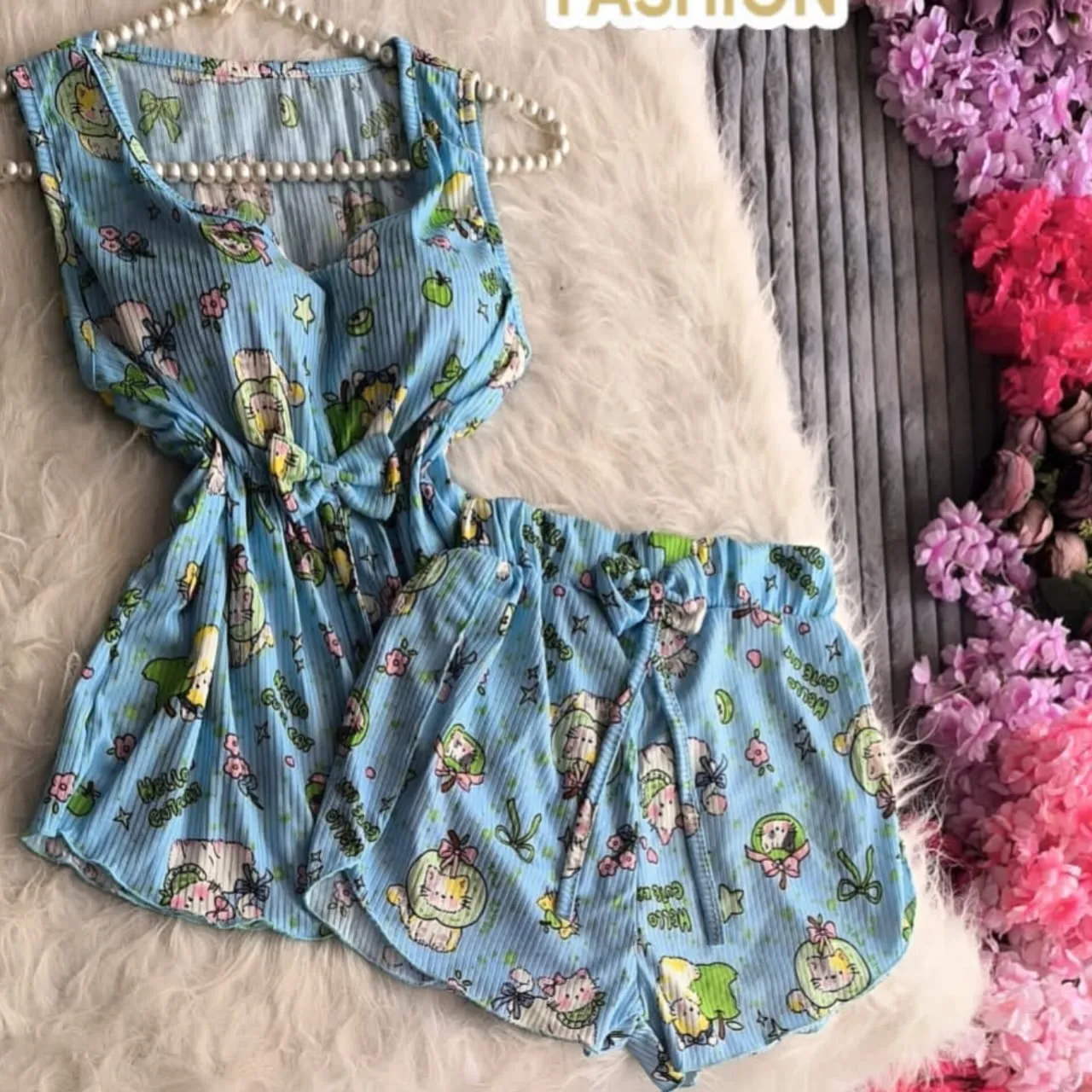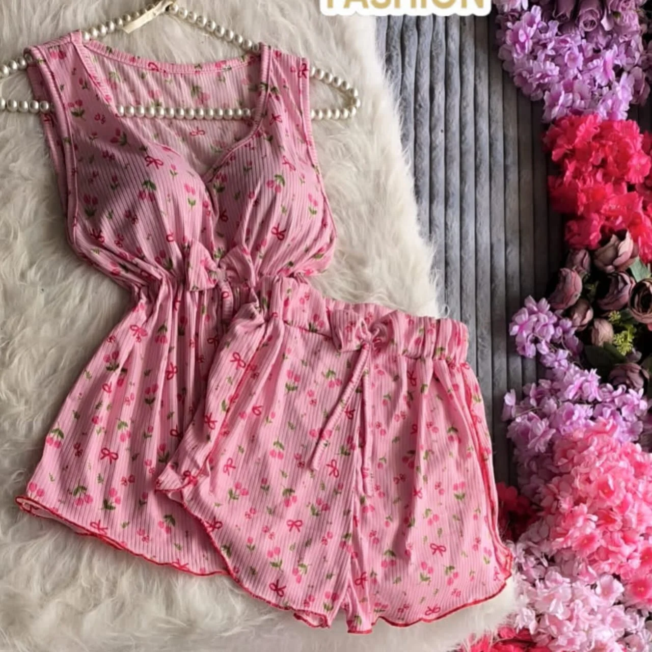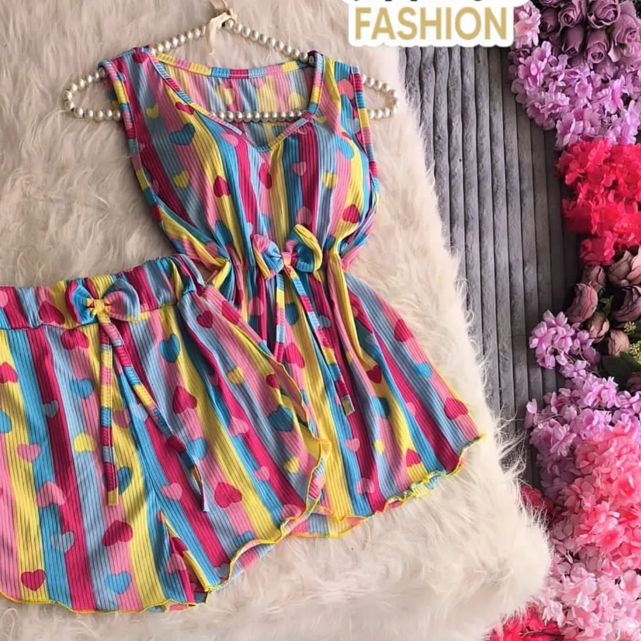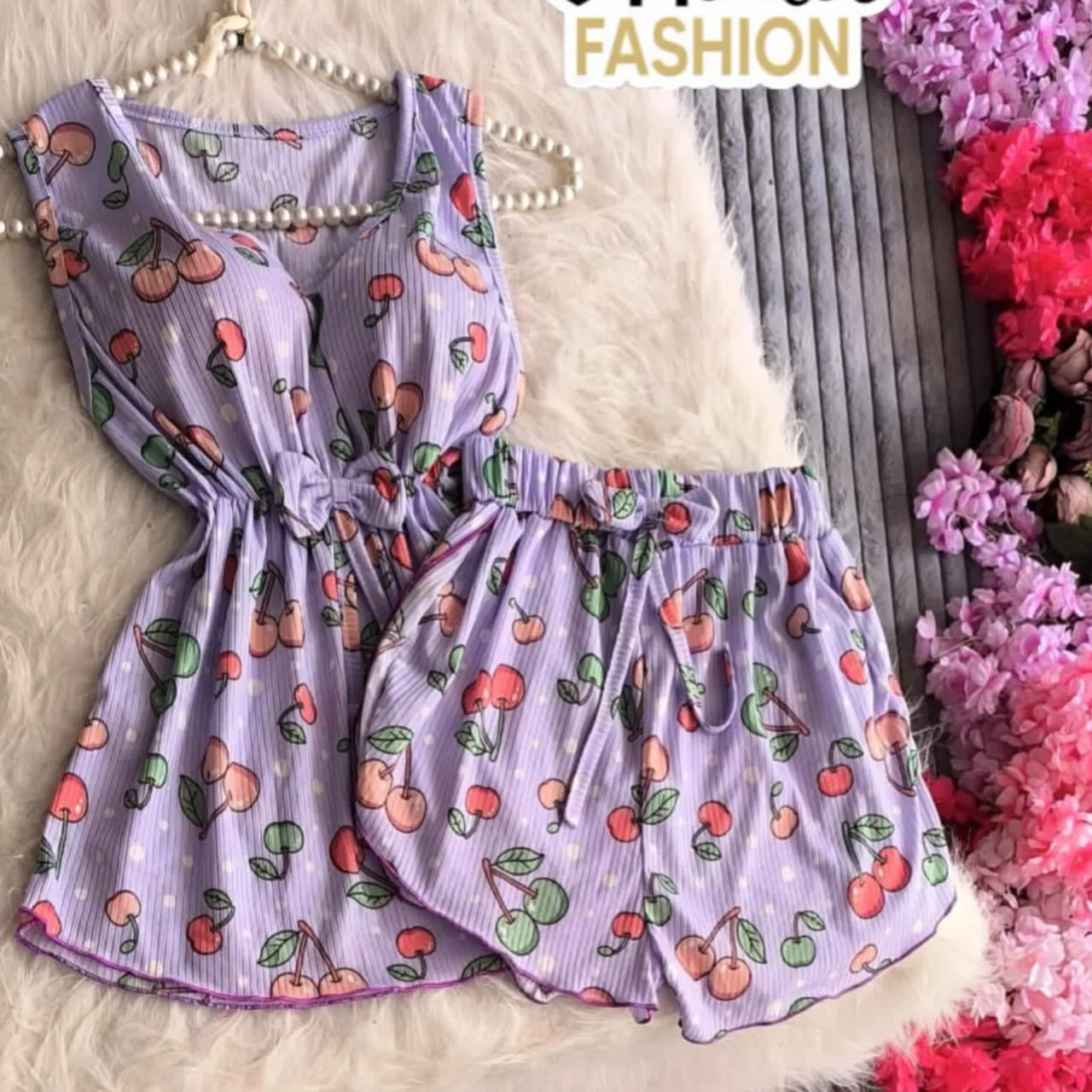 طقم شورت قماش ريب ليكرا