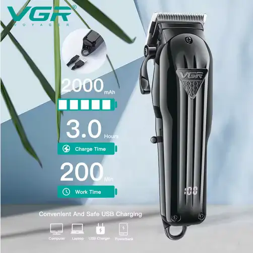 شحن سريع عبر منفذ USB: يصل وقت القص إلى 200 دقيقة تقريبًا بشحن لمدة 3 ساعات فقط. أداء عالٍ في أي مكان. بطارية ليثيوم تدوم طويلًا مثالية للسفر.